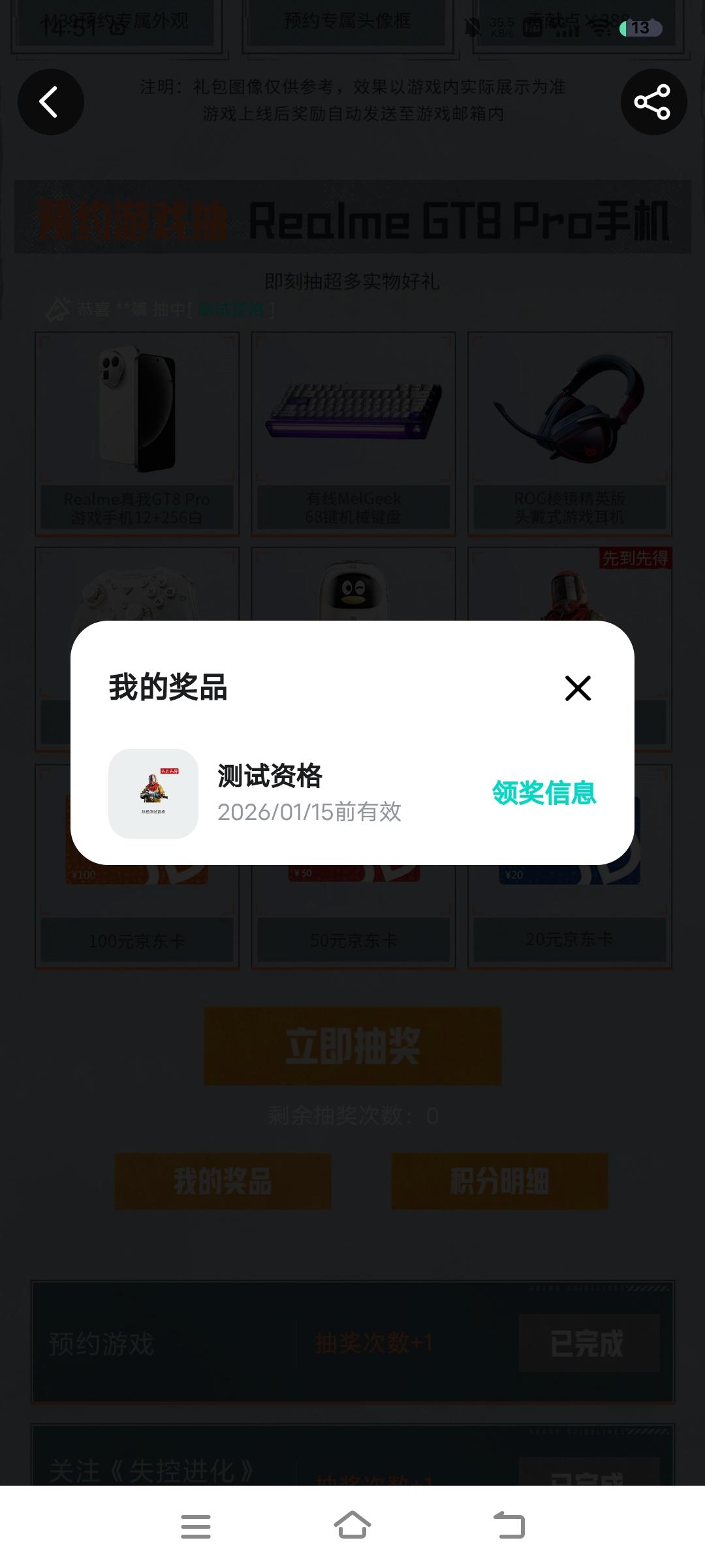 刚抽出来的测试资格,怎么就说领奖信息收集截止,啥意思