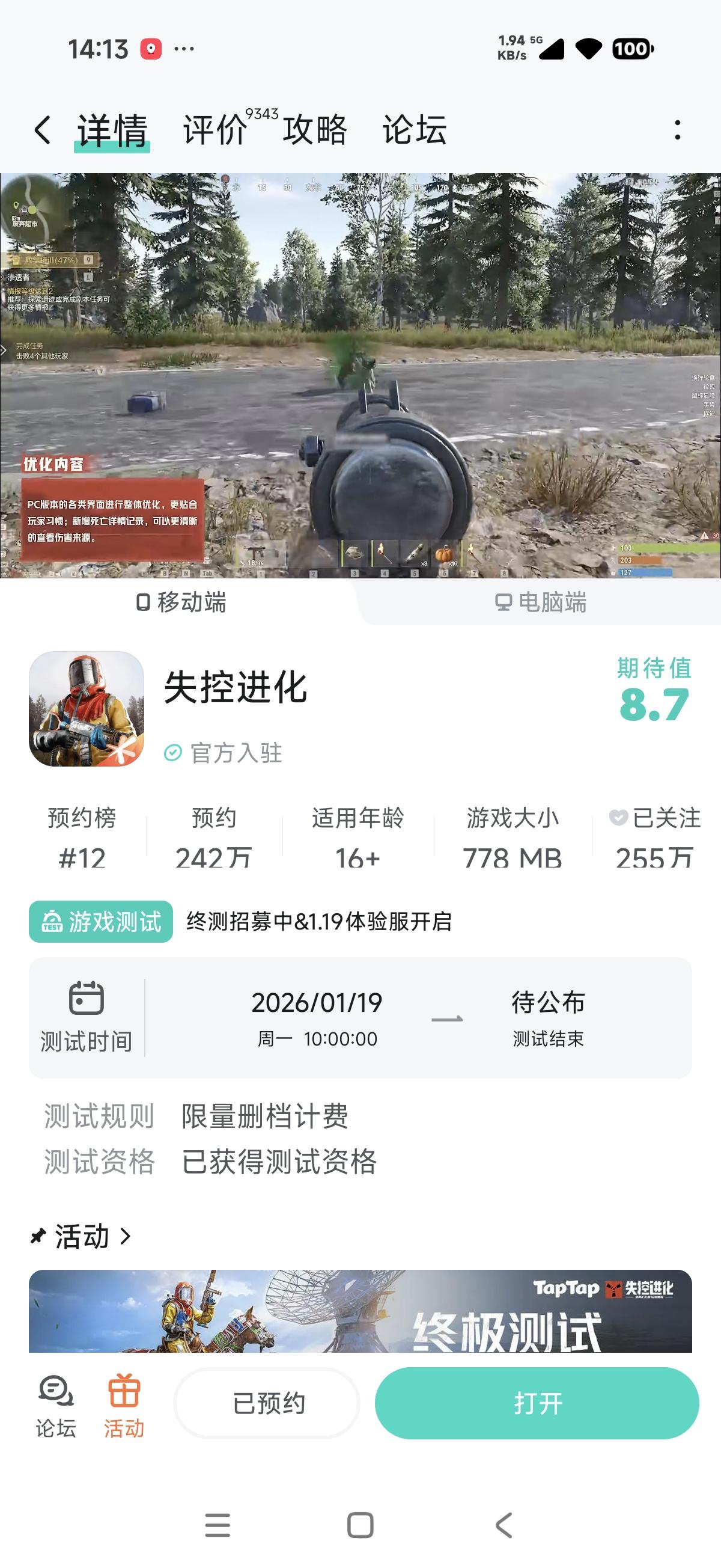 家人们,体验共研服第一期资格查询及预下载正式开启啦!之前报名体验共研服招募的兄弟们可以前往报名平台查询资格了哦~具体查询及下载指引可查阅:没有获取体验共研服资格的兄弟也不要气馁,小黄和论坛管理员每天都会在社区冲浪,每天不定时不定量随机送出体验共研服资格~大家在论坛保持活跃,就有机会被小黄或管理员锁定哦~同时!我们2月中上旬开启的“终极测试”还在火热招募中!做为游戏正式公测前的最后一次测
