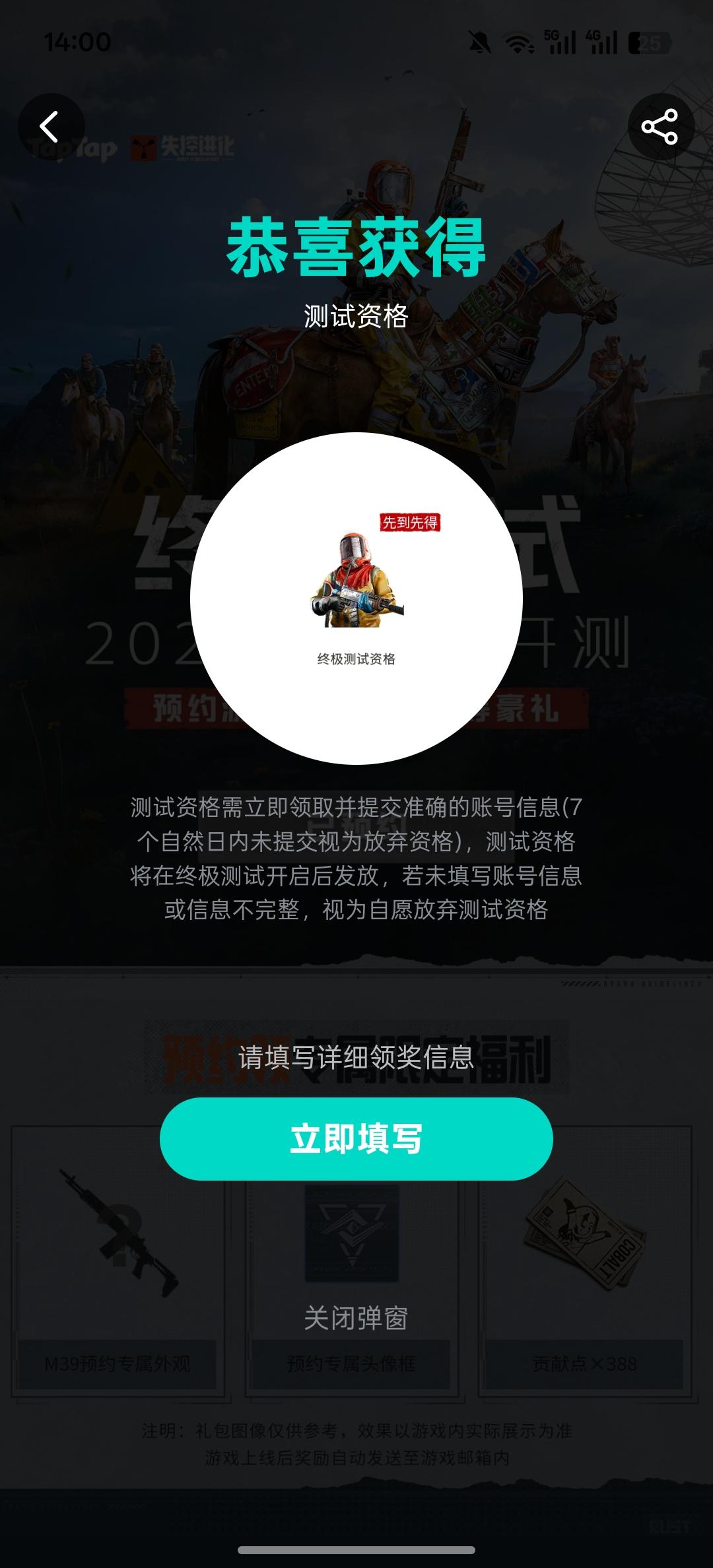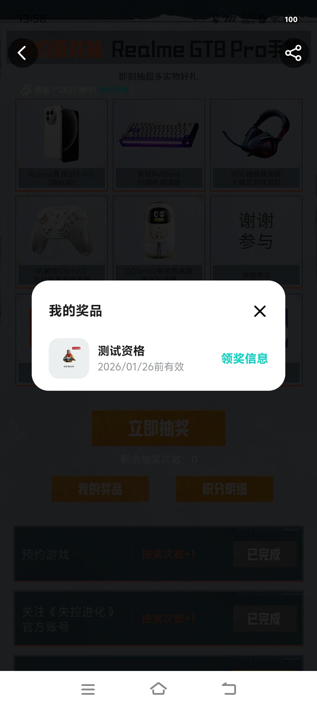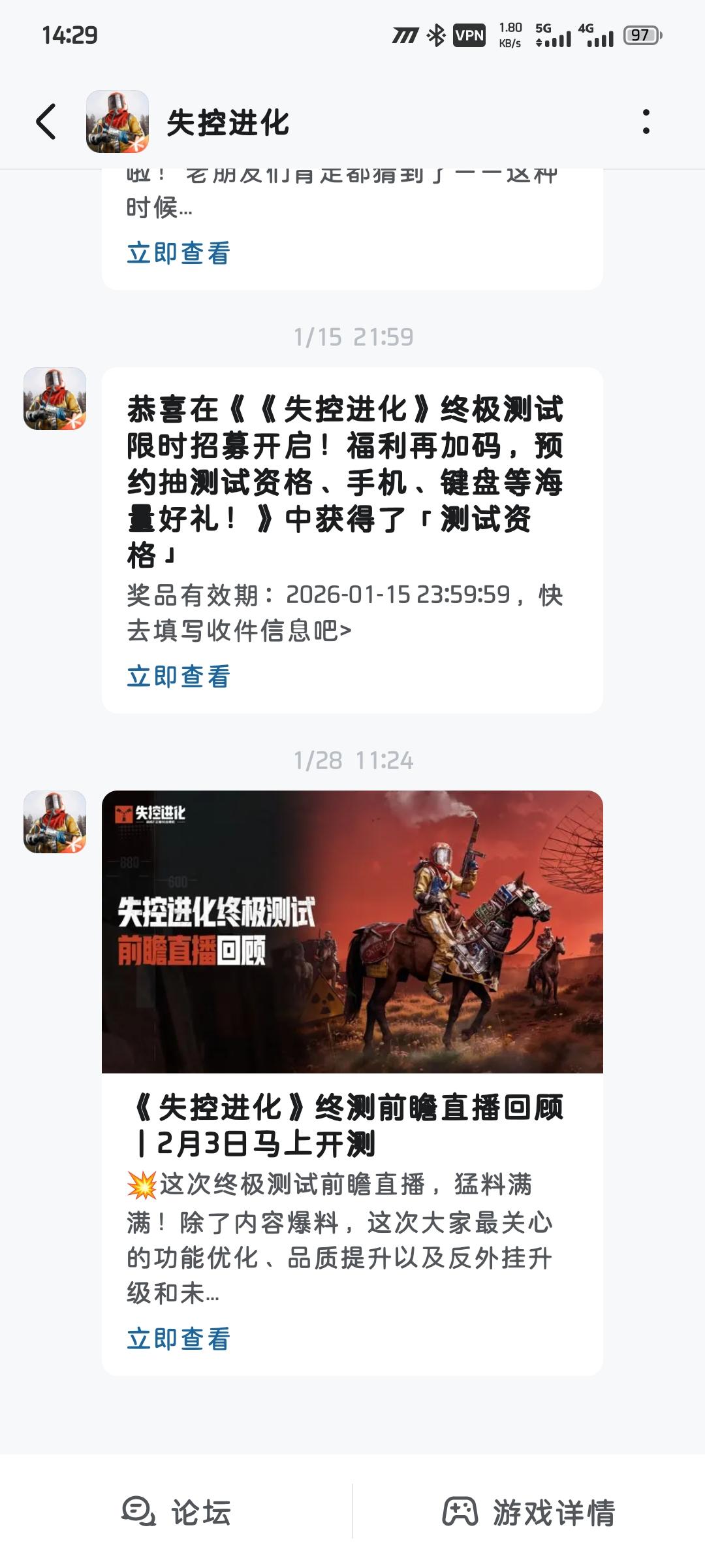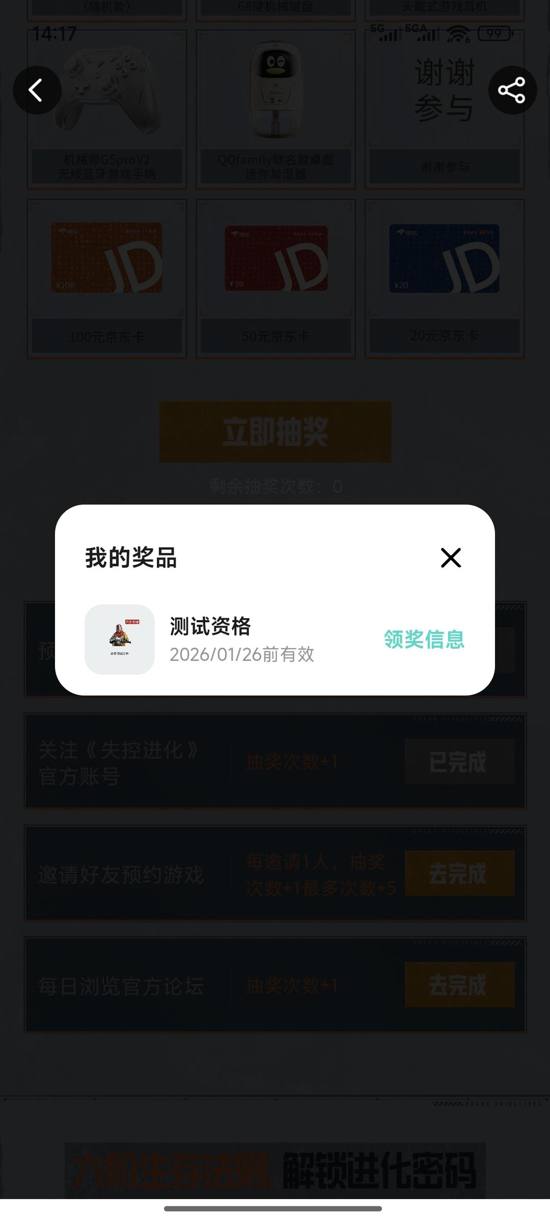 1月份抽到的今天查了没有测试资格,上次25年10月份也抽到一次填写完信息还是没有资格官方解决一下#失控进化 #求失控进化求游戏资格