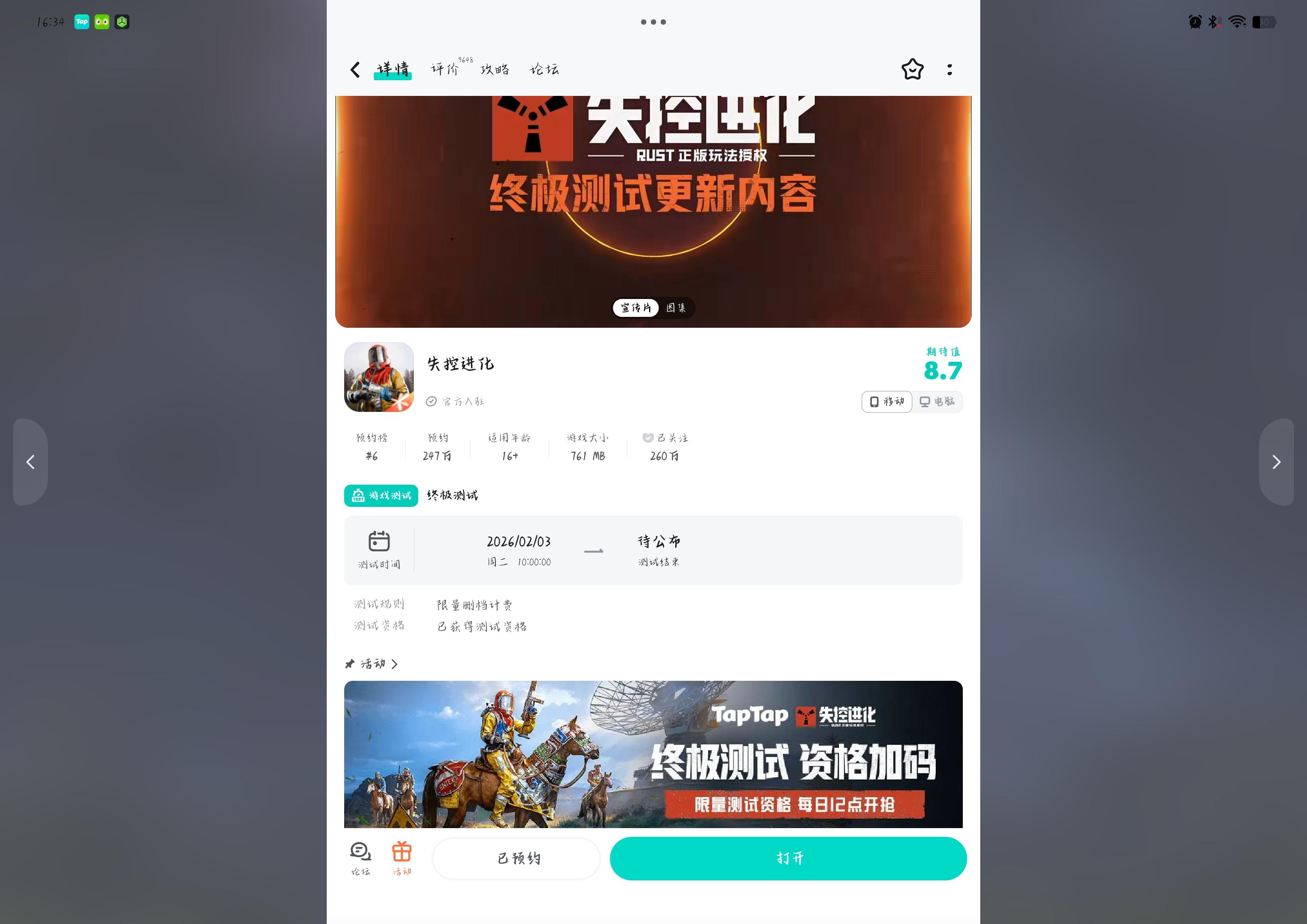 🥰兄弟伙们准备好了吗?大家期待已久的《失控进化》终极测试资格查询及预下载现已开启,游戏将于2月3日10:00正式开服!💥小黄把详细攻略都整理好了~看完这张图,让你一次到位,上岛无忧!👀还没拿到资格的兄弟伙们也不用担心!本次测试规模空前,官网、社区等多重渠道持续开放海量测试资格放号活动!偷偷告诉你,在评论区留言,还可能触发小黄专属资格彩蛋哦~*小黄提醒:凡是参与过 “灯塔测试”“登岛测试”“体