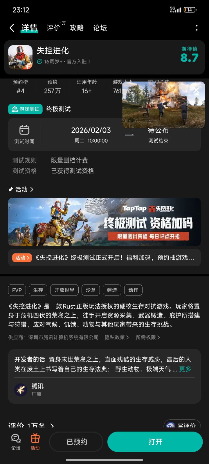 现在这个游戏已经进入最后公测了我不敢想还有这么多bug,我是一共测试了两个回的用户,游戏时间也一个多星期了,吐槽一下遇到的问题吧。1.肝度问题游戏整体肝度都比较大,除基础资源外,其他资源获取困难,在外搜索还要时刻警惕打架偷袭,有些玩家直接把家建到物资点旁边,你摸屋子,他偷袭打你,一点脾气没有,零件获取困难,作为游戏最主要的资源之一,平时摸个零件困难的要死,偏偏解锁科技树,制作物品都需要大量的零