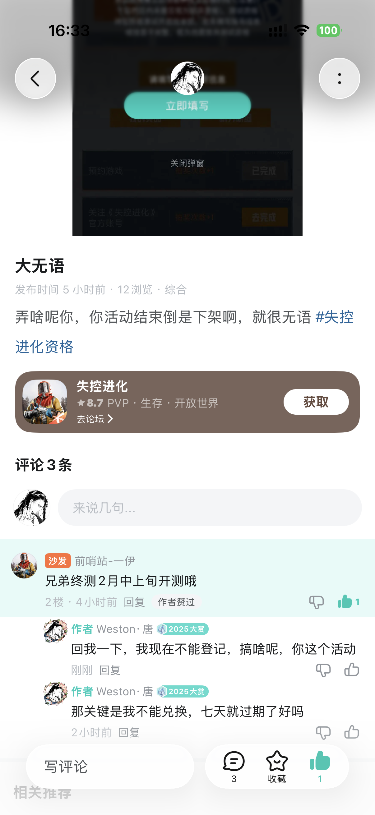 很搞笑的官方,我怀疑都是人机,全部都是后台系统恢复,我已经刷到无数条和我一样的帖子了 #失控进化