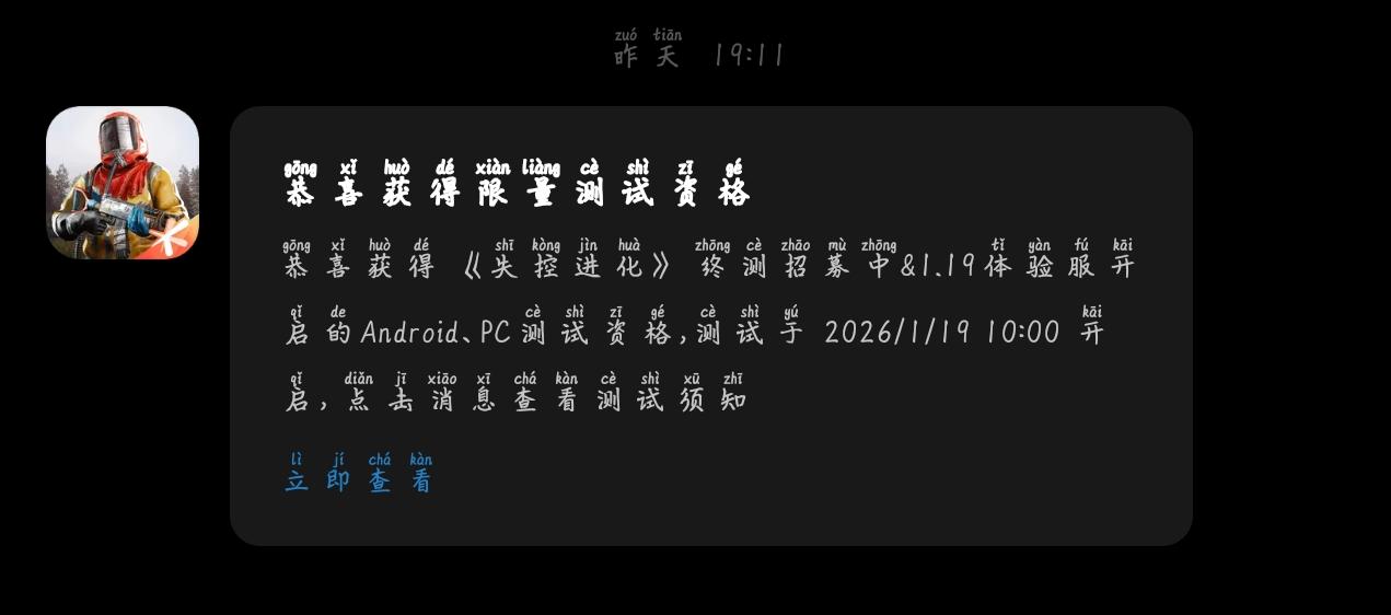 家人们,体验共研服第一期资格查询及预下载正式开启啦!之前报名体验共研服招募的兄弟们可以前往报名平台查询资格了哦~具体查询及下载指引可查阅:没有获取体验共研服资格的兄弟也不要气馁,小黄和论坛管理员每天都会在社区冲浪,每天不定时不定量随机送出体验共研服资格~大家在论坛保持活跃,就有机会被小黄或管理员锁定哦~同时!我们2月中上旬开启的“终极测试”还在火热招募中!做为游戏正式公测前的最后一次测