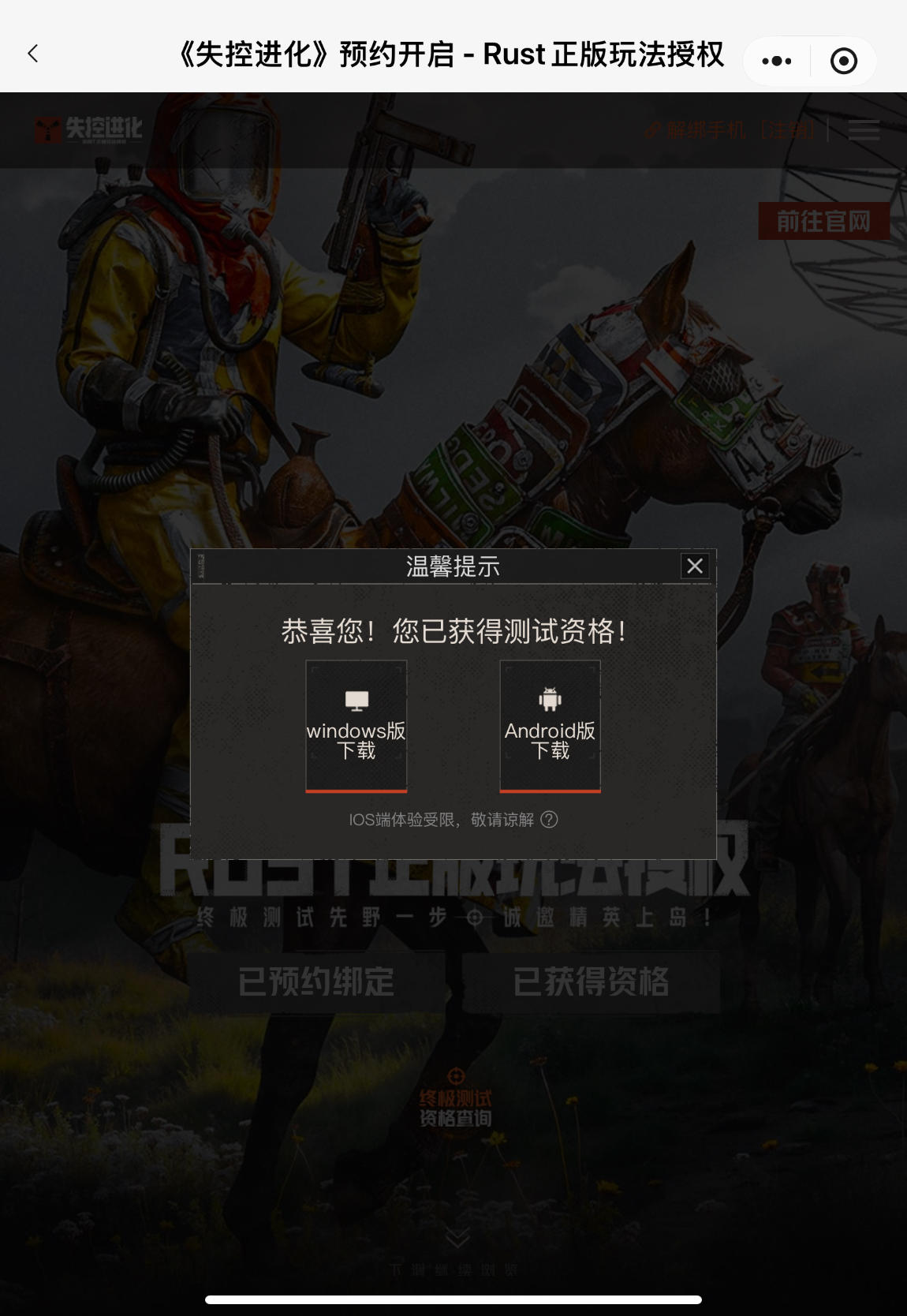 有资格为什么官方没有给我发下载链接?这让我们有资格的,怎么玩?求个回复
