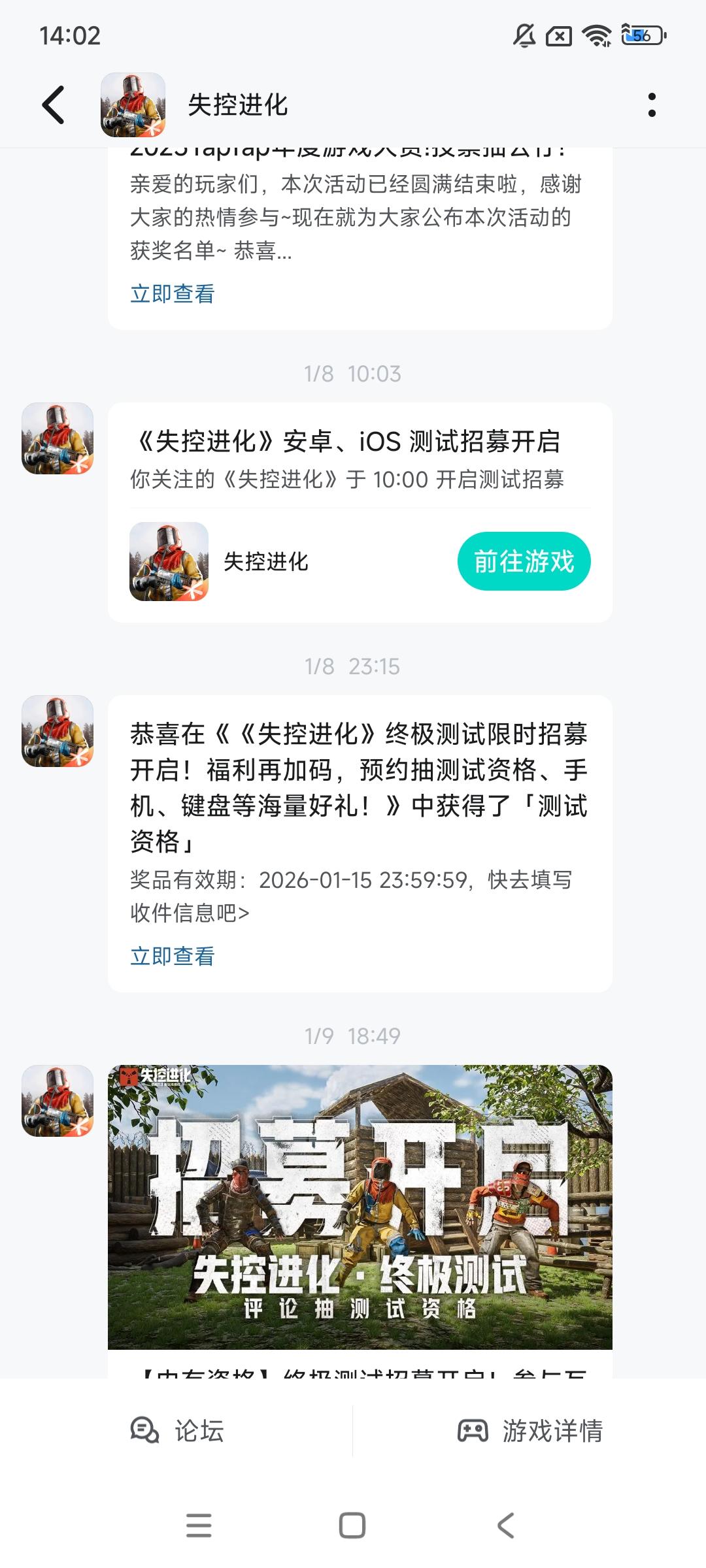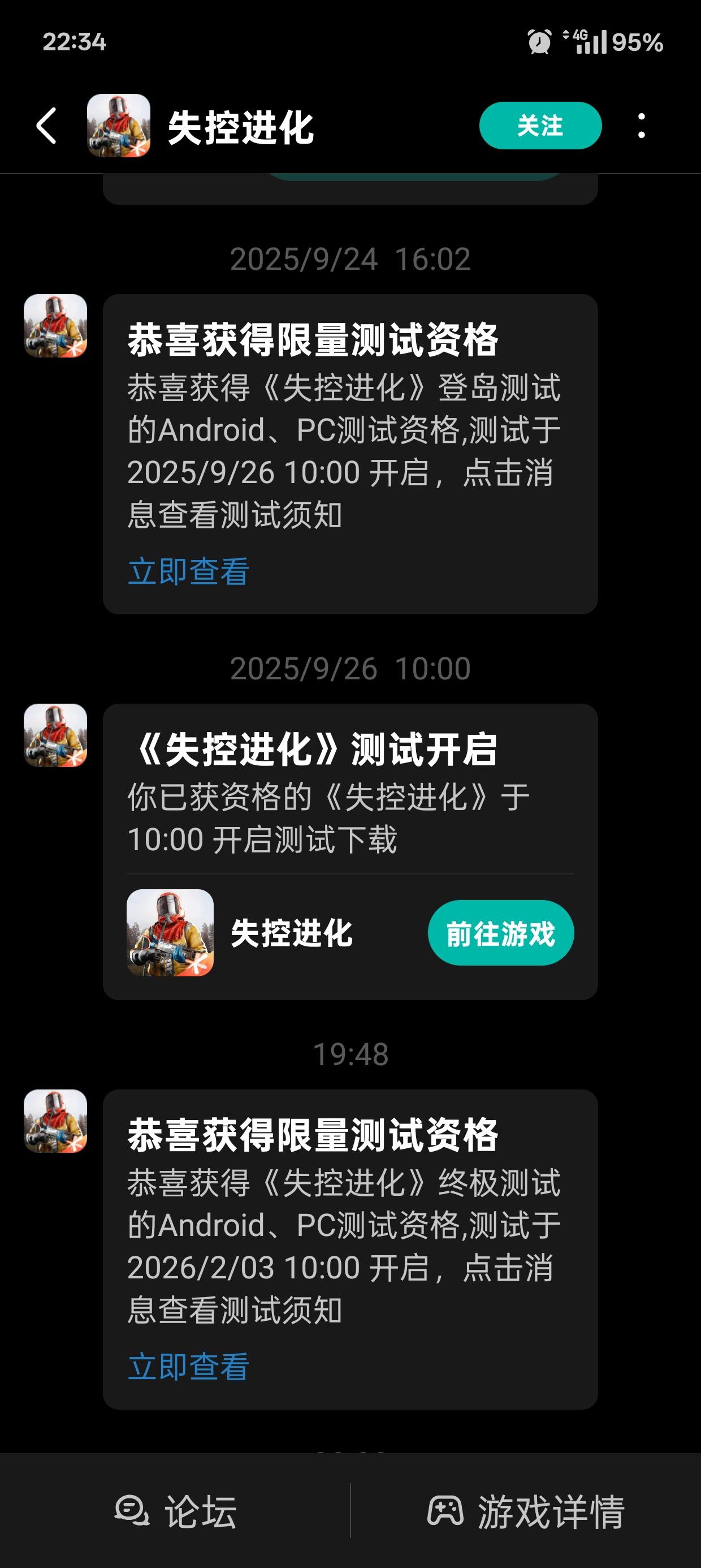 🥰兄弟伙们准备好了吗?大家期待已久的《失控进化》终极测试资格查询及预下载现已开启,游戏将于2月3日10:00正式开服!💥小黄把详细攻略都整理好了~看完这张图,让你一次到位,上岛无忧!👀还没拿到资格的兄弟伙们也不用担心!本次测试规模空前,官网、社区等多重渠道持续开放海量测试资格放号活动!偷偷告诉你,在评论区留言,还可能触发小黄专属资格彩蛋哦~*小黄提醒:凡是参与过 “灯塔测试”“登岛测试”“体