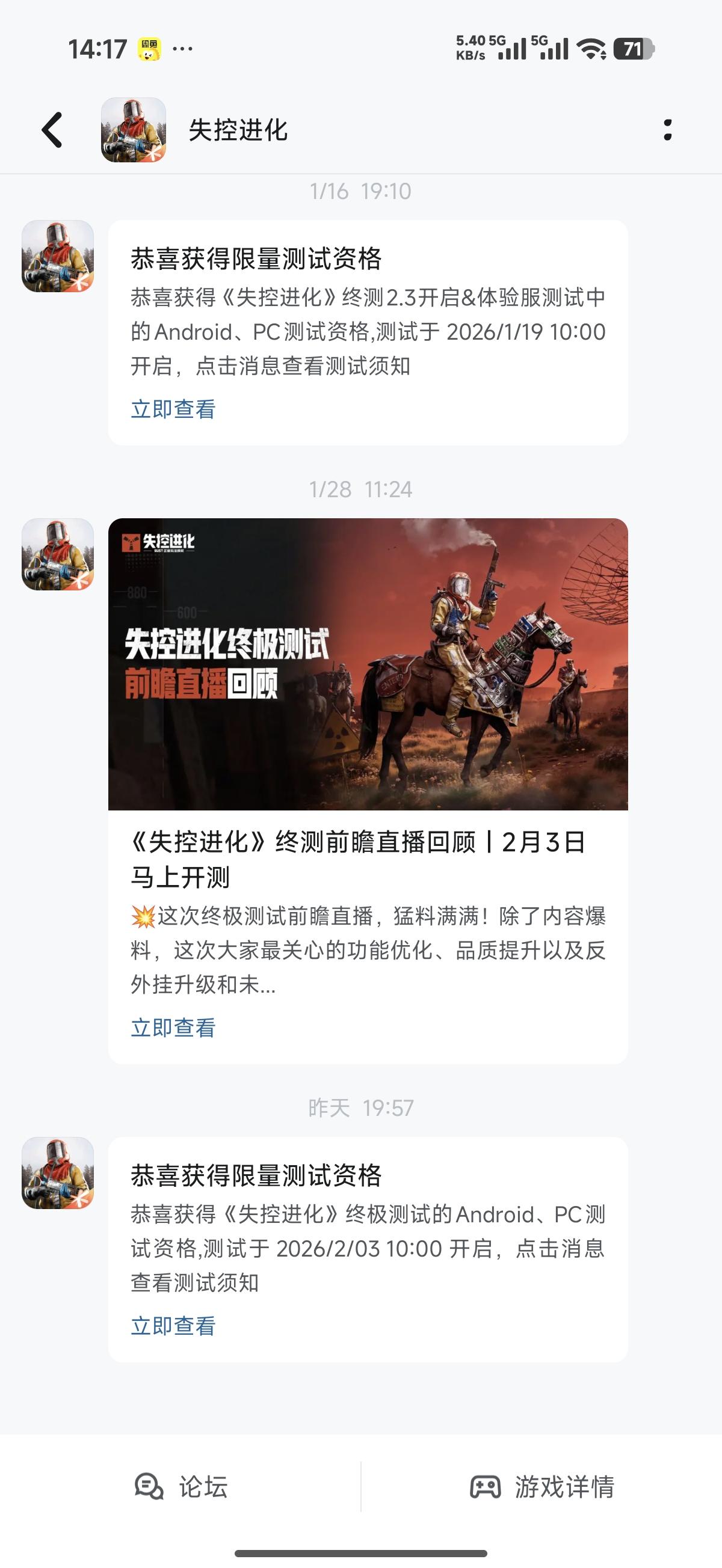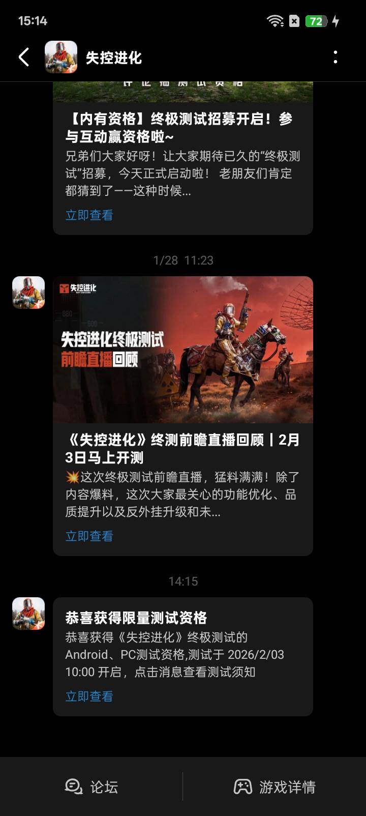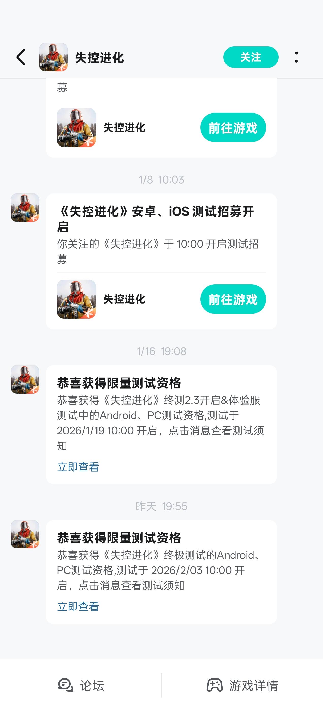 🥰兄弟伙们准备好了吗?大家期待已久的《失控进化》终极测试资格查询及预下载现已开启,游戏将于2月3日10:00正式开服!💥小黄把详细攻略都整理好了~看完这张图,让你一次到位,上岛无忧!👀还没拿到资格的兄弟伙们也不用担心!本次测试规模空前,官网、社区等多重渠道持续开放海量测试资格放号活动!偷偷告诉你,在评论区留言,还可能触发小黄专属资格彩蛋哦~*小黄提醒:凡是参与过 “灯塔测试”“登岛测试”“体