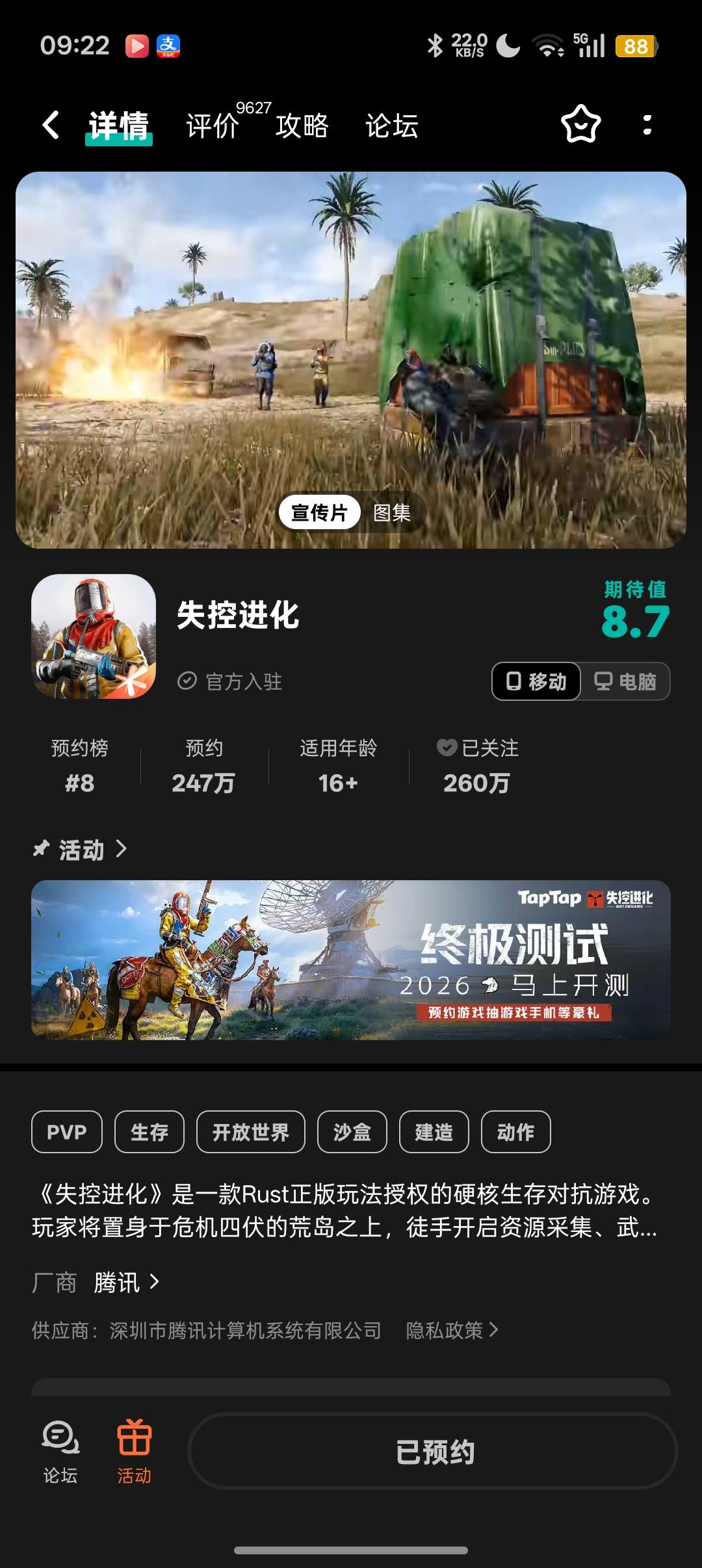 🥰兄弟伙们准备好了吗?大家期待已久的《失控进化》终极测试资格查询及预下载现已开启,游戏将于2月3日10:00正式开服!💥小黄把详细攻略都整理好了~看完这张图,让你一次到位,上岛无忧!👀还没拿到资格的兄弟伙们也不用担心!本次测试规模空前,官网、社区等多重渠道持续开放海量测试资格放号活动!偷偷告诉你,在评论区留言,还可能触发小黄专属资格彩蛋哦~*小黄提醒:凡是参与过 “灯塔测试”“登岛测试”“体