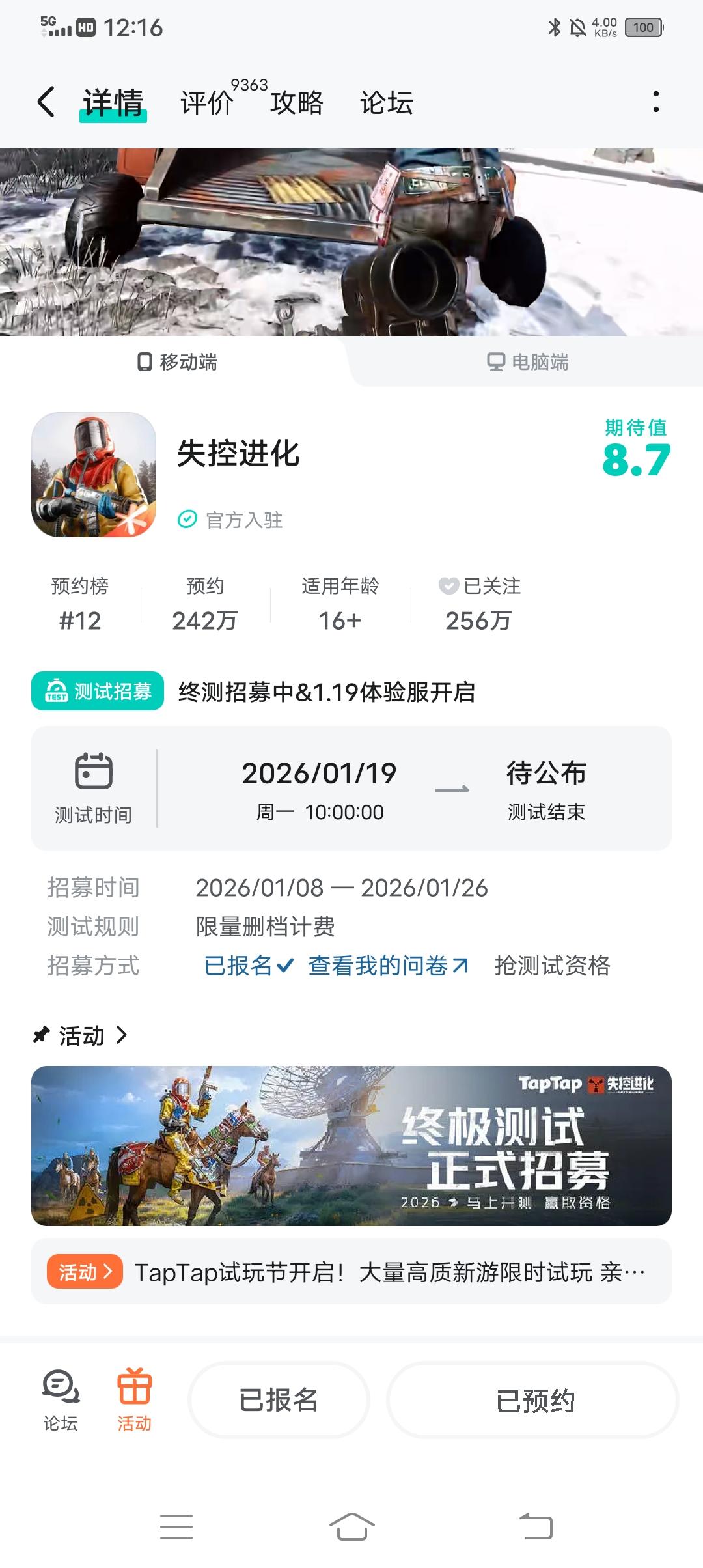 家人们,体验共研服第一期资格查询及预下载正式开启啦!之前报名体验共研服招募的兄弟们可以前往报名平台查询资格了哦~具体查询及下载指引可查阅:没有获取体验共研服资格的兄弟也不要气馁,小黄和论坛管理员每天都会在社区冲浪,每天不定时不定量随机送出体验共研服资格~大家在论坛保持活跃,就有机会被小黄或管理员锁定哦~同时!我们2月中上旬开启的“终极测试”还在火热招募中!做为游戏正式公测前的最后一次测