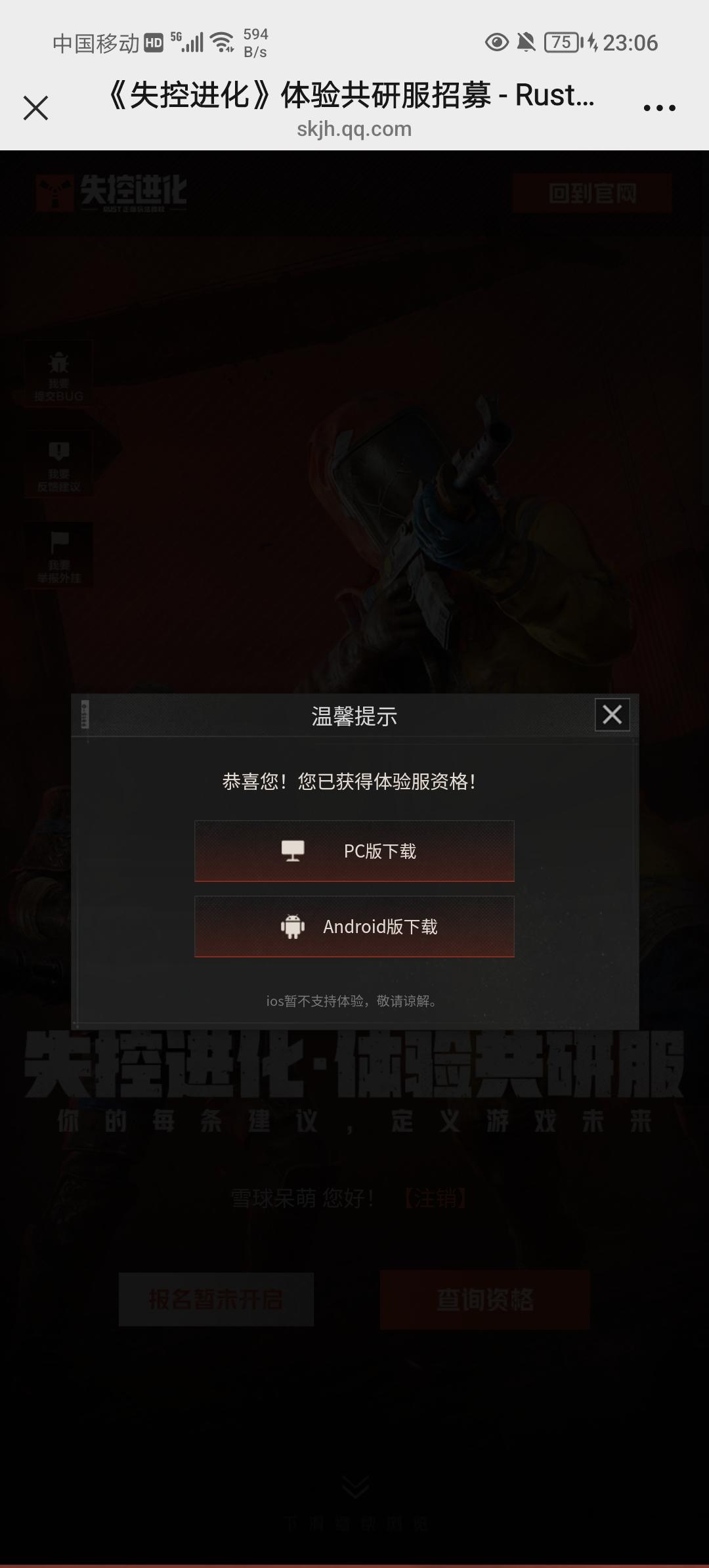 兄弟们我第一次获得测试资格,但是我进去它说我账号没测试资格,这是什么回事,我应该怎么弄