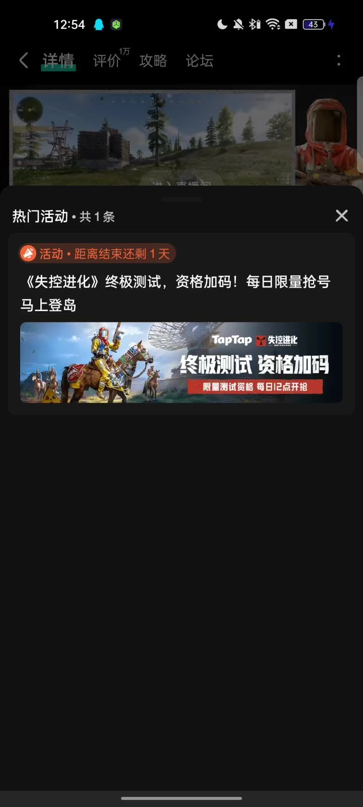 感谢您的关注与支持,可以多关注官方信息哦也,目前游戏正在测试中,您可以在《失控进化》游戏详情页-点击终极测试资格加码活动,每天都可参与,期待你的参加! 获得资格后需到小程序内成功兑换资格,再进入游戏体验