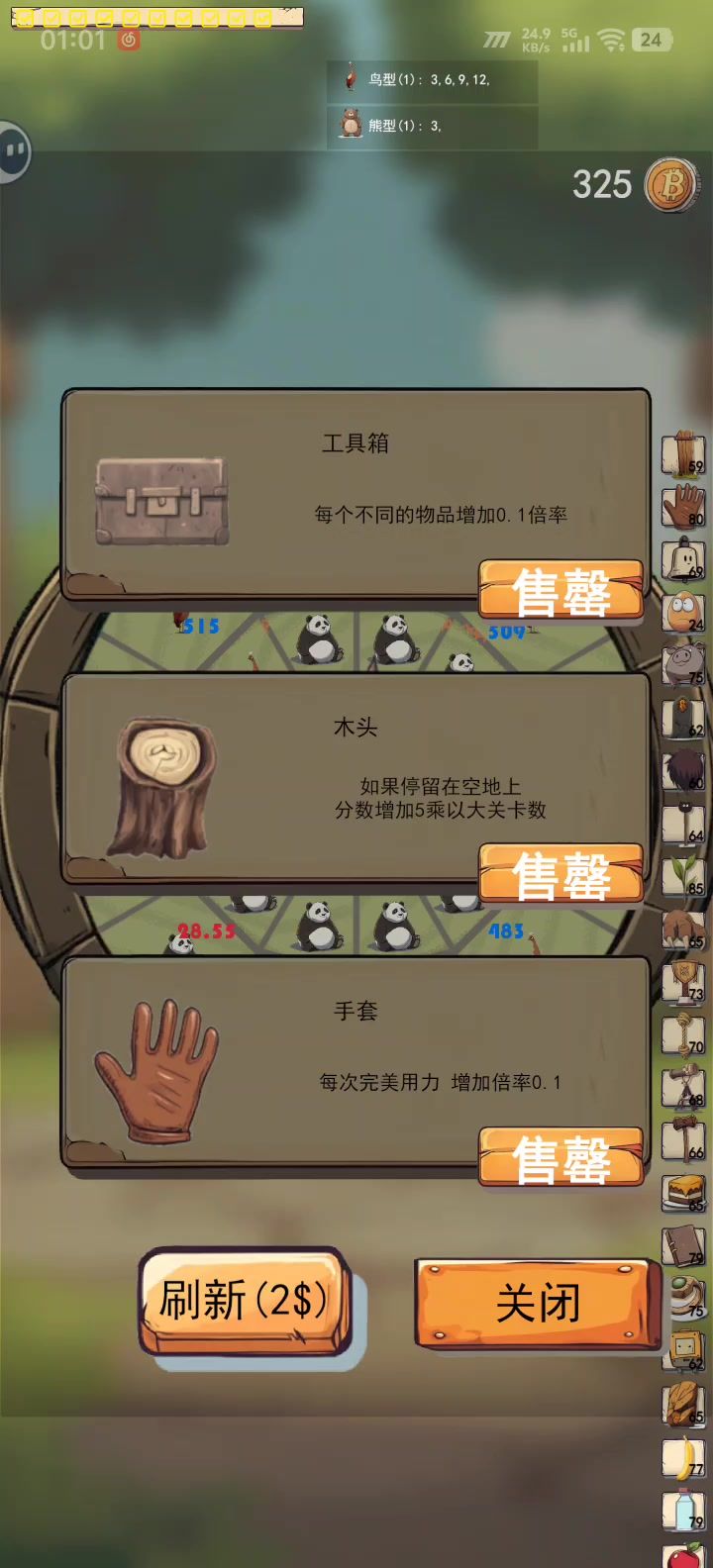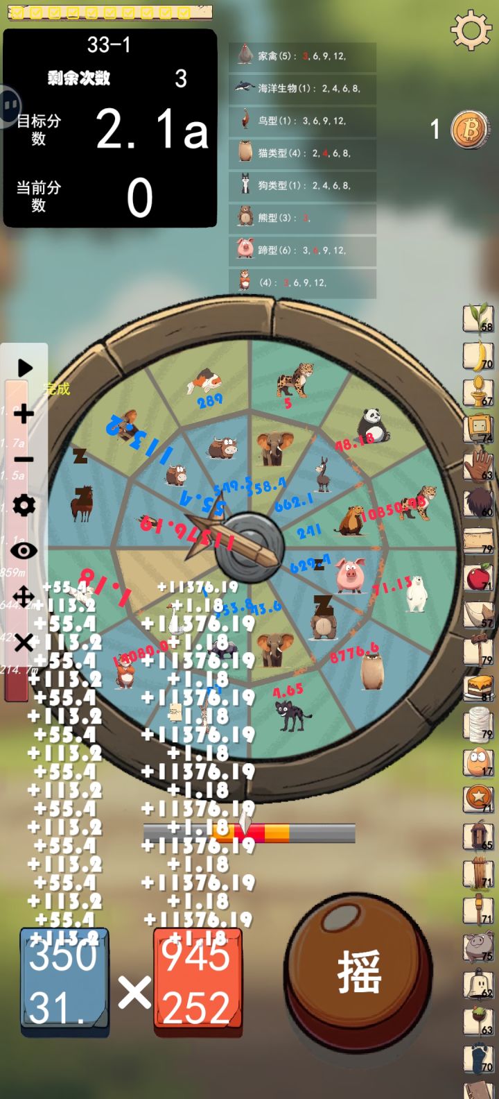 12蹄子+3熊+蜜蜂+9家禽,想输都难,后面无限金币无限加成。没意思