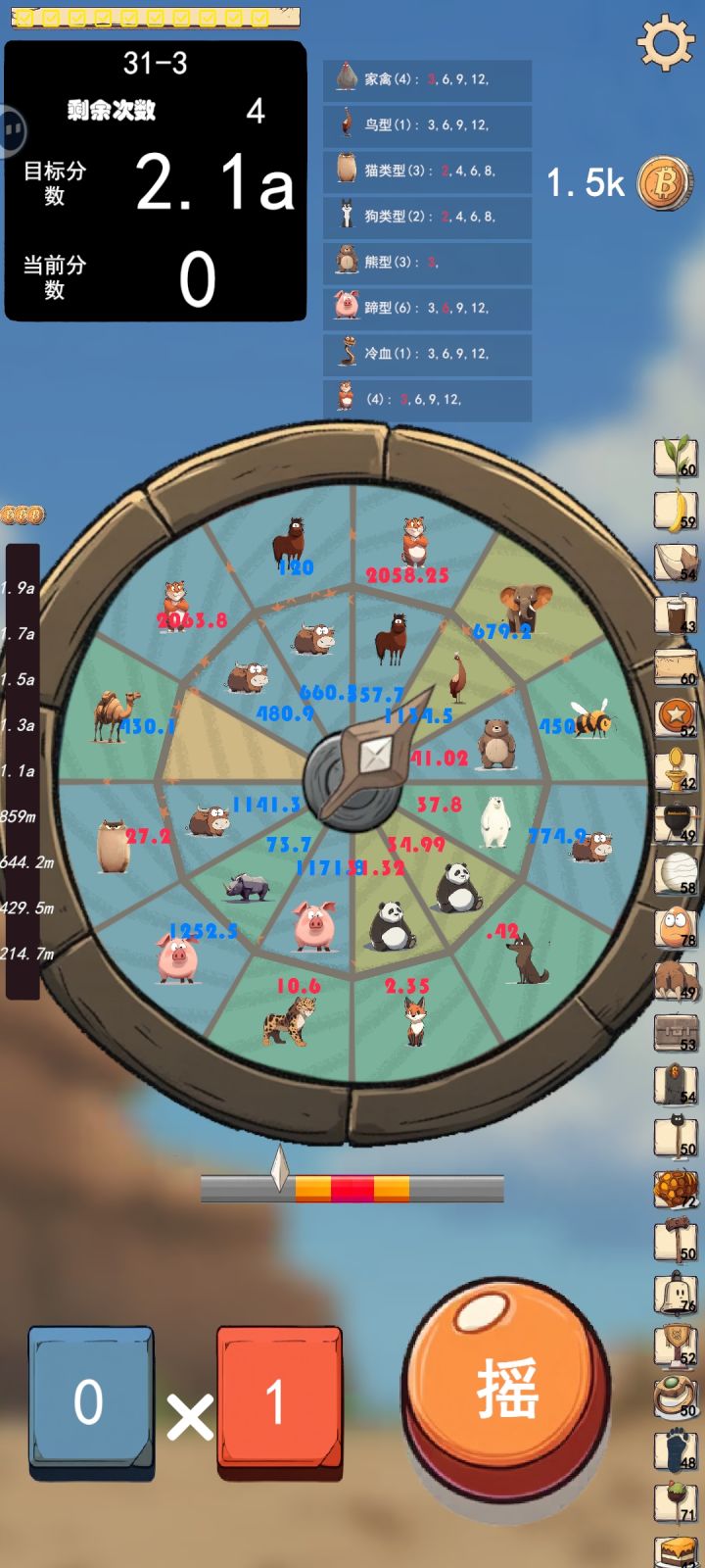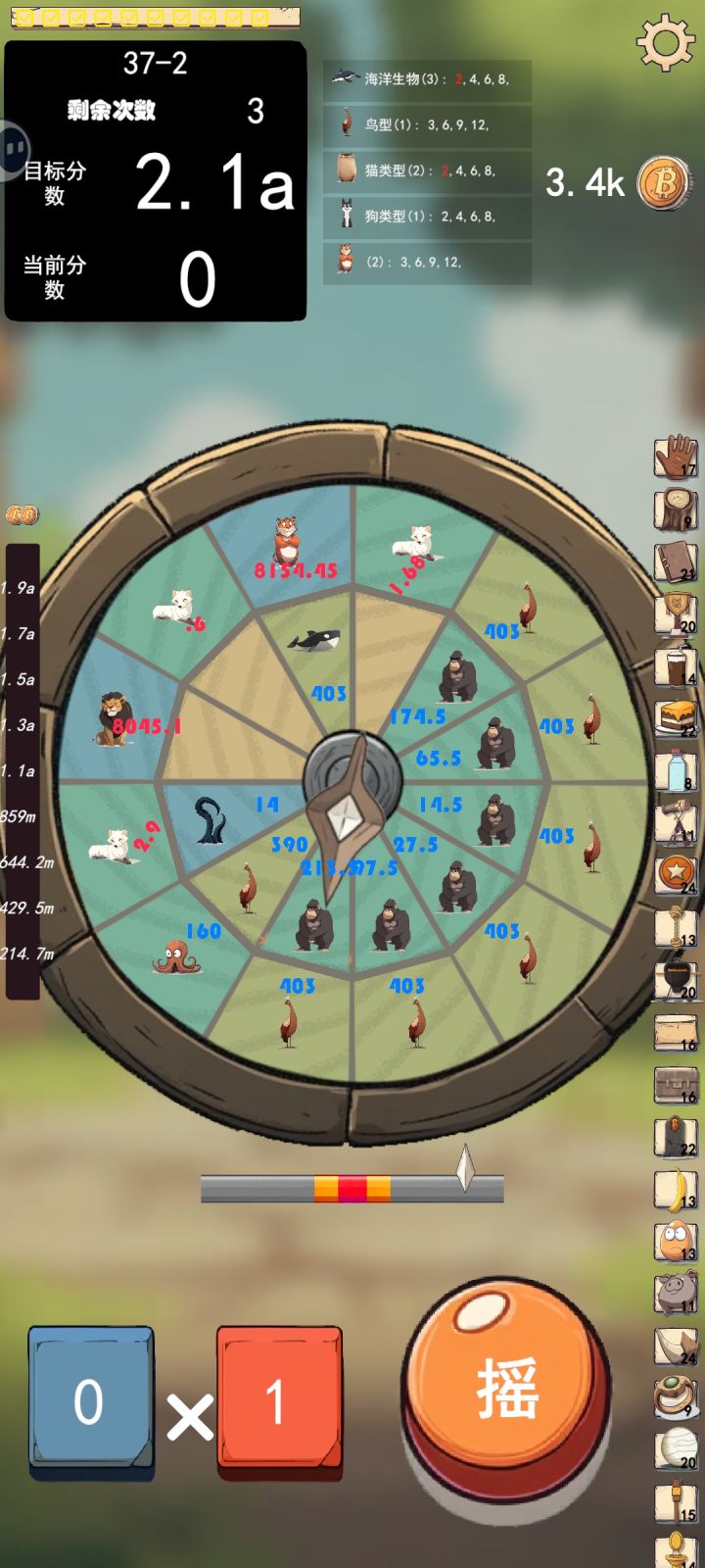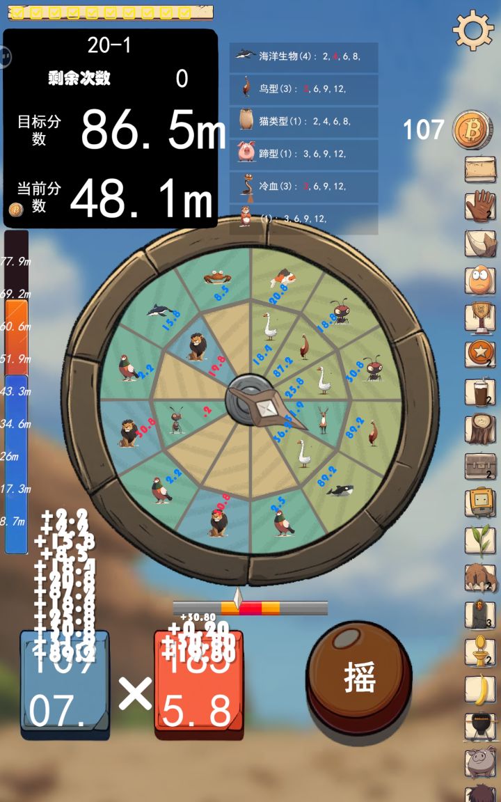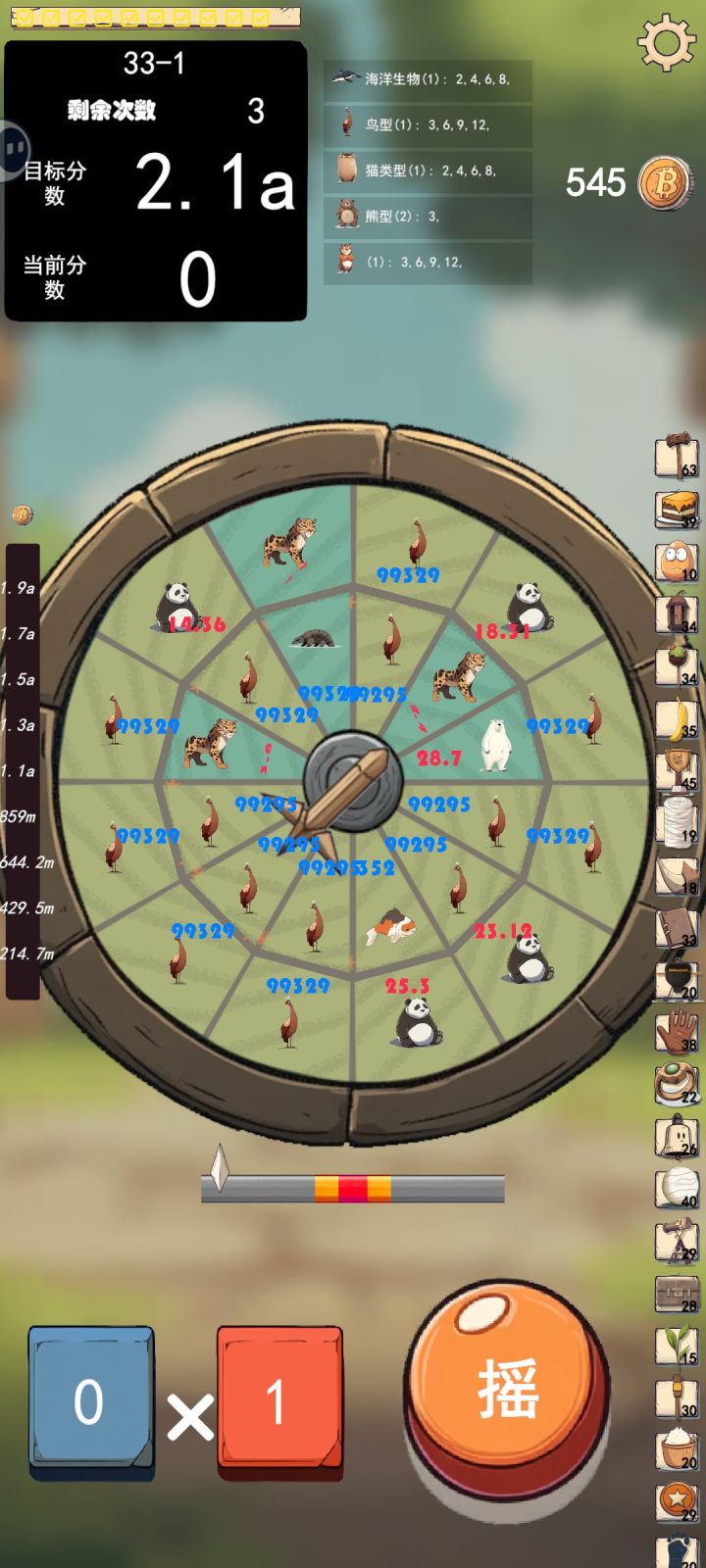前期动物带的比较杂,后面发现猫科组合的倍率翻倍过于逆天,截个图留作纪念,有人知道其他指针和神器怎么解锁吗?另:霸王龙技能没有发动是不是有bug