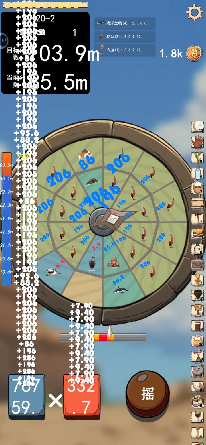 前期动物带的比较杂,后面发现猫科组合的倍率翻倍过于逆天,截个图留作纪念,有人知道其他指针和神器怎么解锁吗?另:霸王龙技能没有发动是不是有bug
