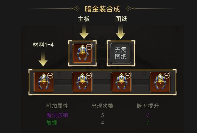 端游我合装备不下于上千手了把,而且1测的时候我也去玩过,发现了口袋版的合成玩法还是有点不一样,当初我就是没太注意走了很多弯路。 我走过的弯路肯定不想兄弟们,再走一遍,所以我今天带大家来看看到底有啥区别,可千万别走了我的老路。 蓝装合成玩法与端游不太一样,需要放置主板装备,才有概率继承装备属性词条,如果没有方主板,那么合成出来的金装的三条属性都是随机的。 合成材料依旧还是1主板+图纸+4材料合成。 金