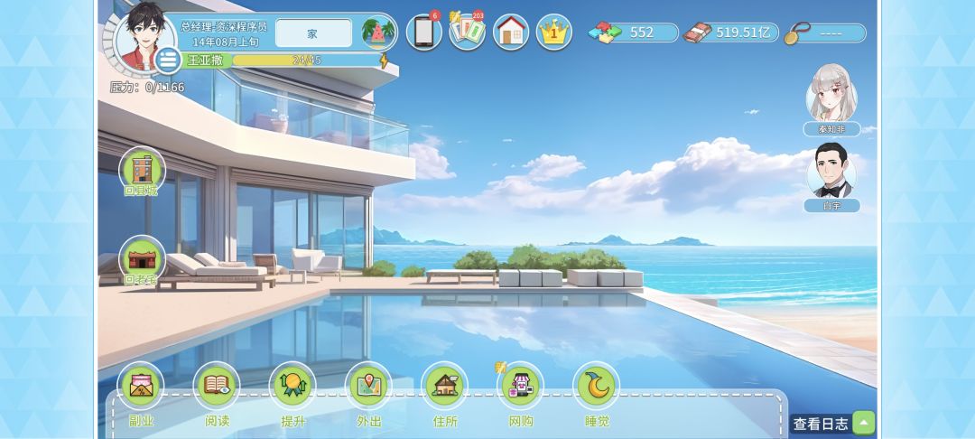 说是无继承其实还是点了六把锁和四叶草。 最核心的目标就是二年底拿下夏州港,三年一月上旬利用夏州港分红拿高尔夫,然后立刻卖掉两个大项目,三年一月下旬拿双子楼。当然是拿的五亿的,全款我算的最快也要三年十月(不一定能成,成了也不一定赚)或者四年一月(亏)了,还不如三年一月拿百分之七十的。 时间很紧,前期无用事件基本没做,不过还是接了四个女主的恋爱线(个人习惯,凹了行动力,勉强回本)。 说下运营思路和关键