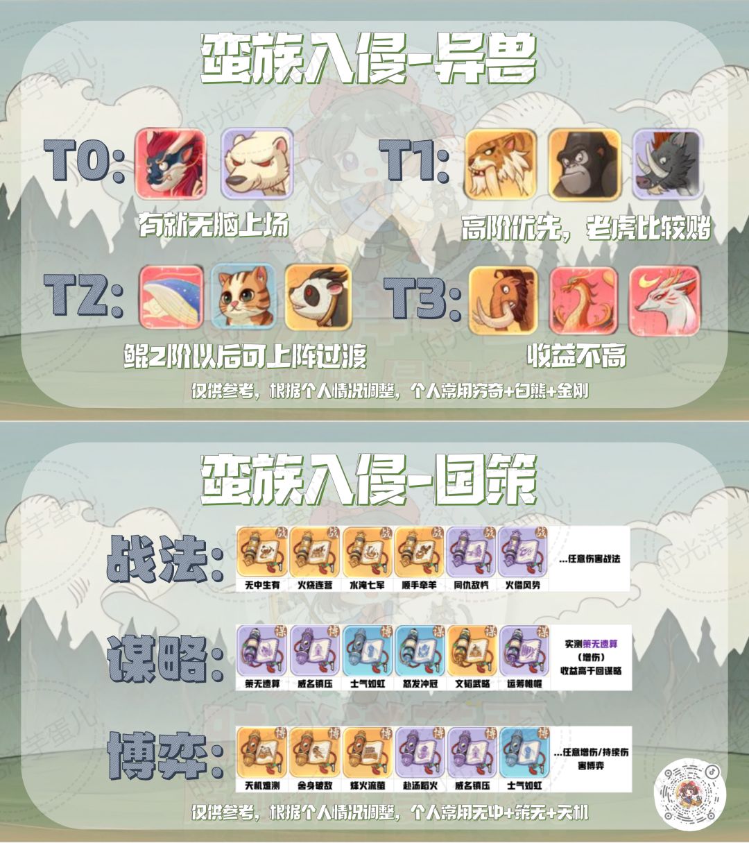 还在纠结不知道蛮族入侵/抗击匈奴/时空裂隙要怎么搭配吗? 一图流常用搭配,帮助你快速组建适配阵容~~ 三种场景一图搞定~~还有过年特别直播~~ 后续还会有更多精彩攻略和直播~记得关注洋芋妹~~ #手游推荐 #模拟经营 #时光大爆炸 #时光大爆炸手游