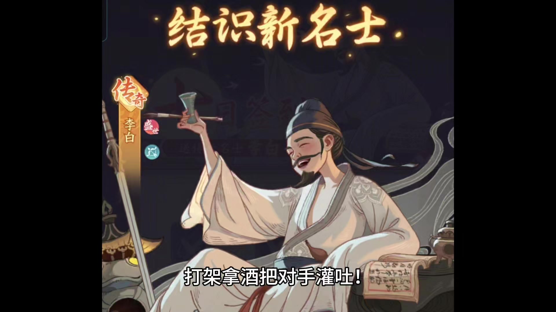 #时光大爆炸公测创作征集令 无论你是否在游戏里及时发展到盛世阶段,入坑七天都是必送你一个李白。 十步杀一人,千里不留行,这是大家对于李白武力值最直观的印象。 不过在时光大爆炸里面,李白嘎掉对手可不是用剑,而是拿他那大得像澡盆子一样的酒坛。对手被他的巨型酒坛子砸到以后,还有极高的概率陷入持续三个回合的呕吐,这可比中毒了还狠! 别看李白善于携带的是弓兵,可这近战能力是真的让对手万般头痛。除了醉酒攻心