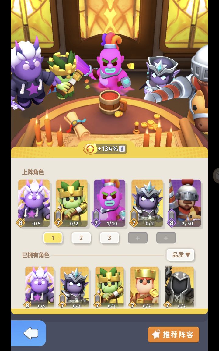 试了很多阵型,最百搭胜率最高的的还是神箭这个,上分,远征,爬塔都还成,每局神箭尽量高。但是遇到6级劫就是送菜,不过谁遇到6劫应该都头痛吧。其次是铁壁,同等级情况下输,有吸血平,高一级还是赢面大。对上氪佬放弃吧,微氪和少氪的还是能打打。远征99层boss是6级铁壁,试了几次,神箭合到6级能过。后来试了下极寒+加特林也能过,不过至少一个要到6级。本人玩得佛系,想起就上去打几局。要是能再增加点其他的
