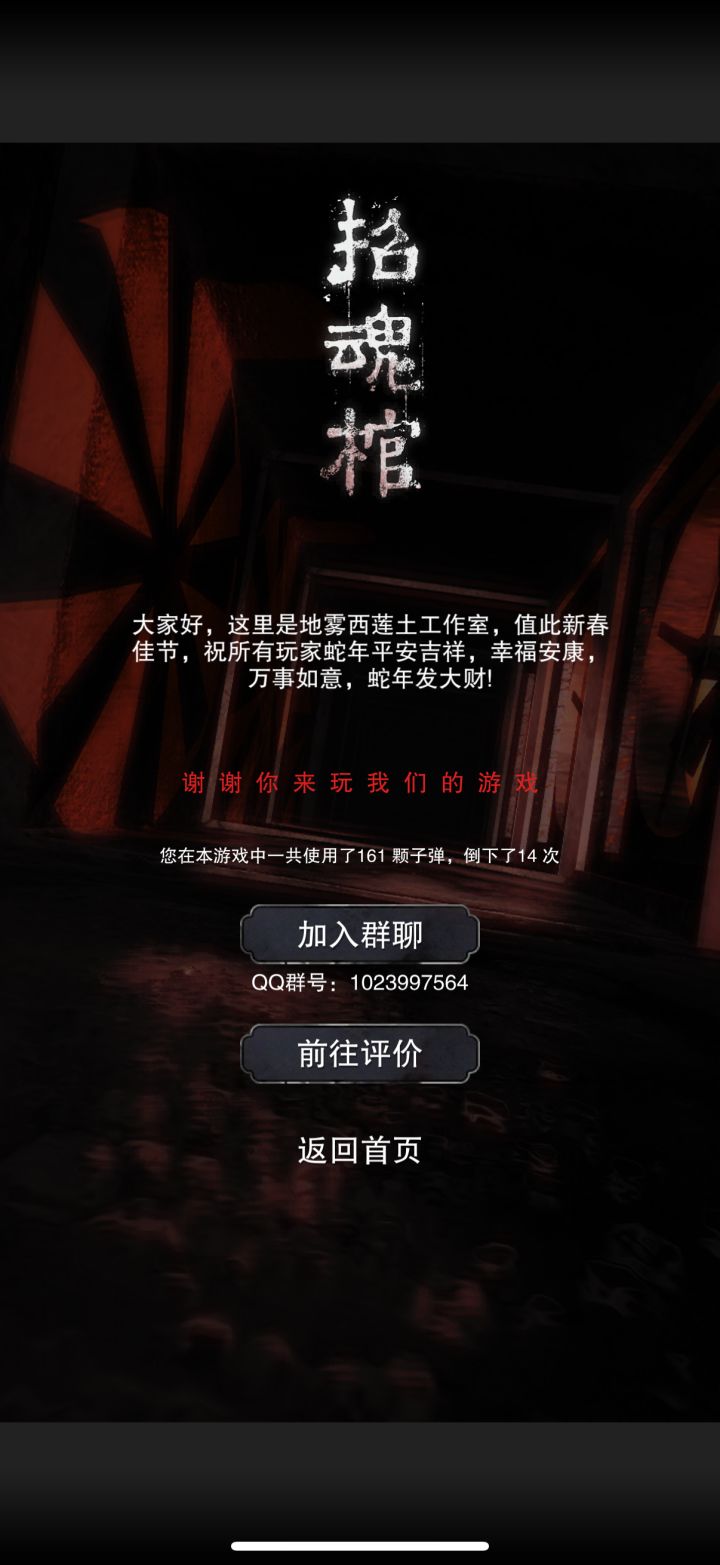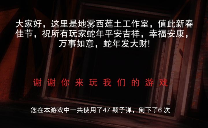 耗时一天,终于通关了,可以说给我的感觉是不错的,我之前有玩过地雾西莲土工作室出品的诡楼回魂,接下来有空可能还会去玩山阴,游戏玩法相较我之前玩的诡楼回魂来讲新颖了不少,尤其是用枪打怪的情节别提多刺激了!