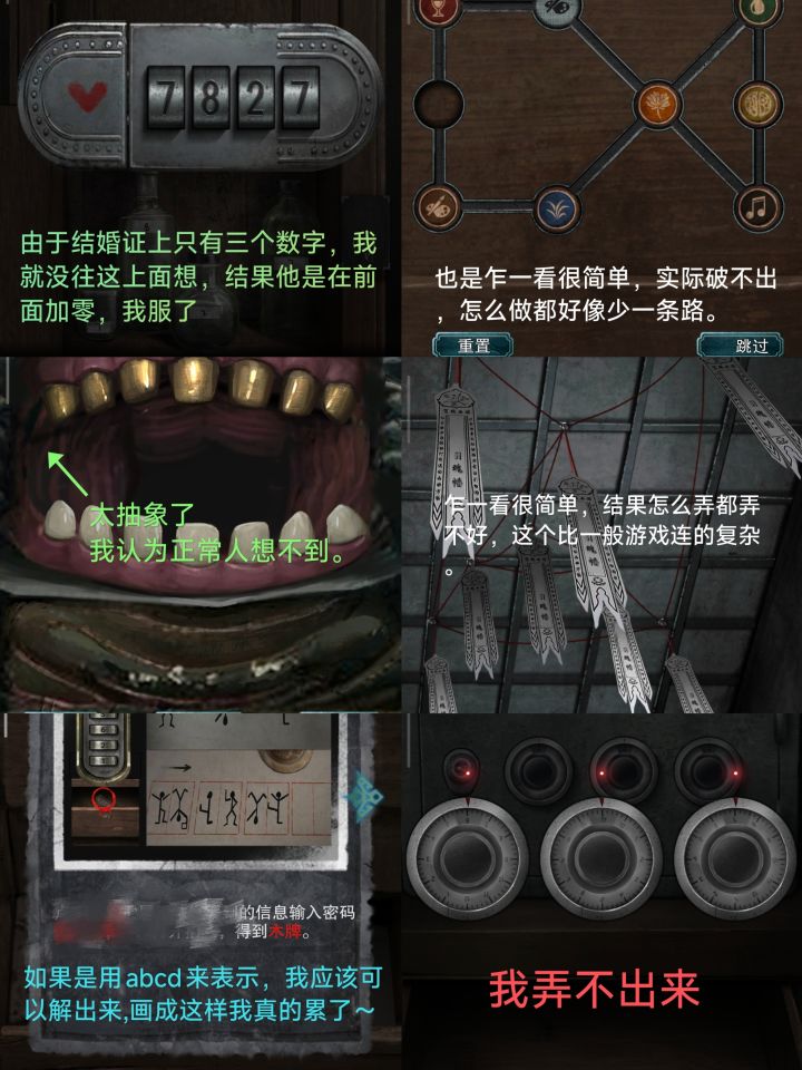 下图是所有我没有解出来的谜题,(这么难的游戏,我竟然只有6个题没解出来,我太棒了!)