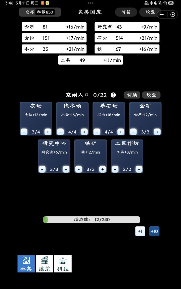 总的来说,如果你喜欢种田发育、慢慢经营的感觉,又不想太肝,那这款《完美国度》真的可以试试,是个不错的休闲选择。