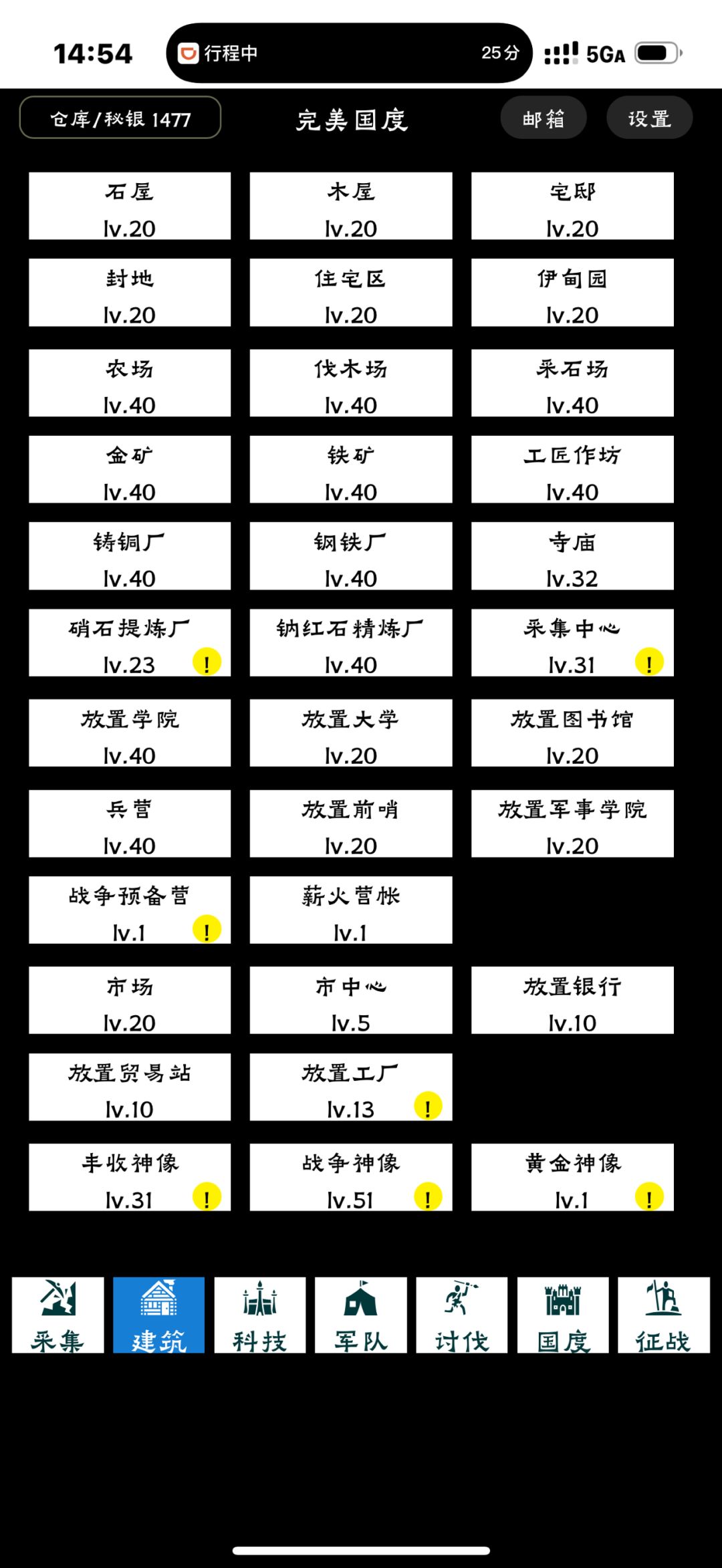 资源建筑模块:前期多注重金-粮-木-石-研究点以及工具,(小提示:每种资源人口超过10会减效率)尽量根据科技以及基建建筑需求合理分配,达到最大化收益。建筑尽量卡11-21-31等级,因为会增加2点的资源产量。一般来说金粮工具可以优先40级,木头石头31即可,其他11-21或者31,根据资源消耗和库存进行一个分配吧。 兵种战力:根据目前版本来说国兵“银月”算是版本之子(同时攻击二个目标造成百分百的