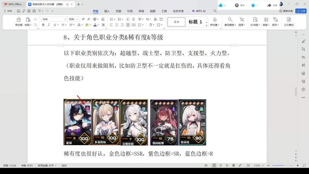 【苍雾世界】8.关于角色分类&稀有度&等级