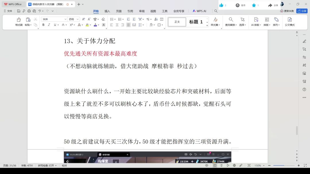 【苍雾世界】13.关于体力分配