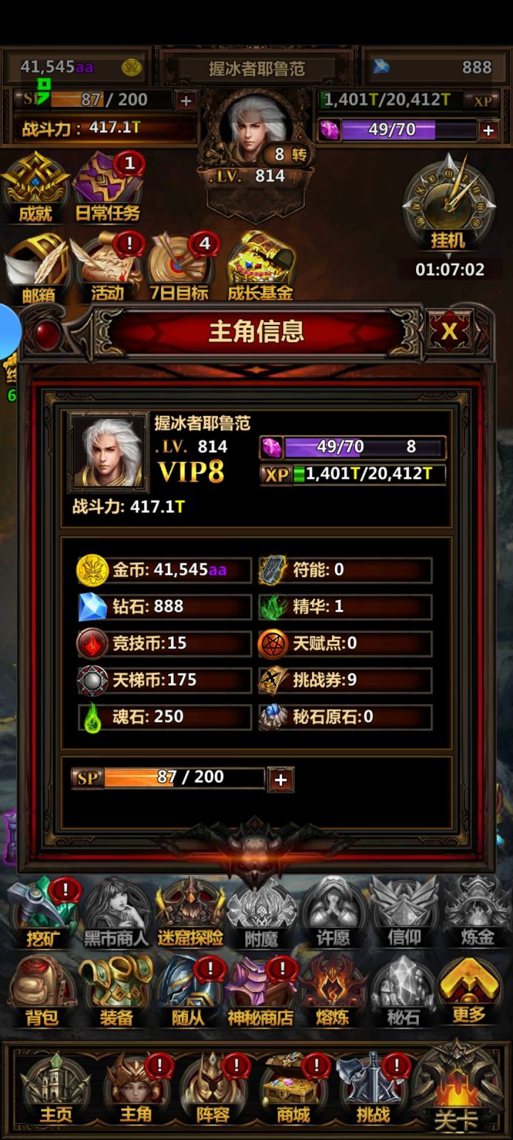 重点:没有满屏的充值窗口。福利多。白嫖也能玩的很爽。好多年了,终于找到这个能玩的了。很休闲也很好玩。挂机玩家的福利。很容易上头。就是希望多点充值的活动。新区多开点这样新来的玩家就不需要跟老玩家一起了。