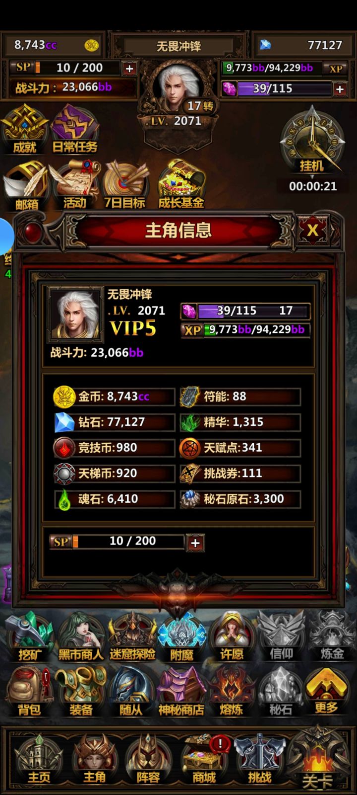 重点:没有满屏的充值窗口。福利多。白嫖也能玩的很爽。好多年了,终于找到这个能玩的了。很休闲也很好玩。挂机玩家的福利。很容易上头。就是希望多点充值的活动。新区多开点这样新来的玩家就不需要跟老玩家一起了。