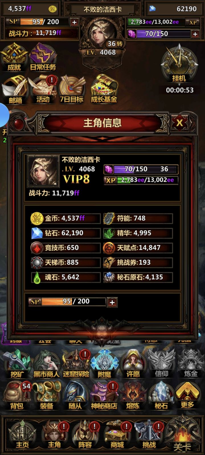 战斗天赋一共22个,挂机天赋一共20个!!还有就是装备宝石全带加生命的,这游戏生命流就是最强的,有什么不懂的可以留言,看到了会回的!! #暗黑主宰攻略 #天赋