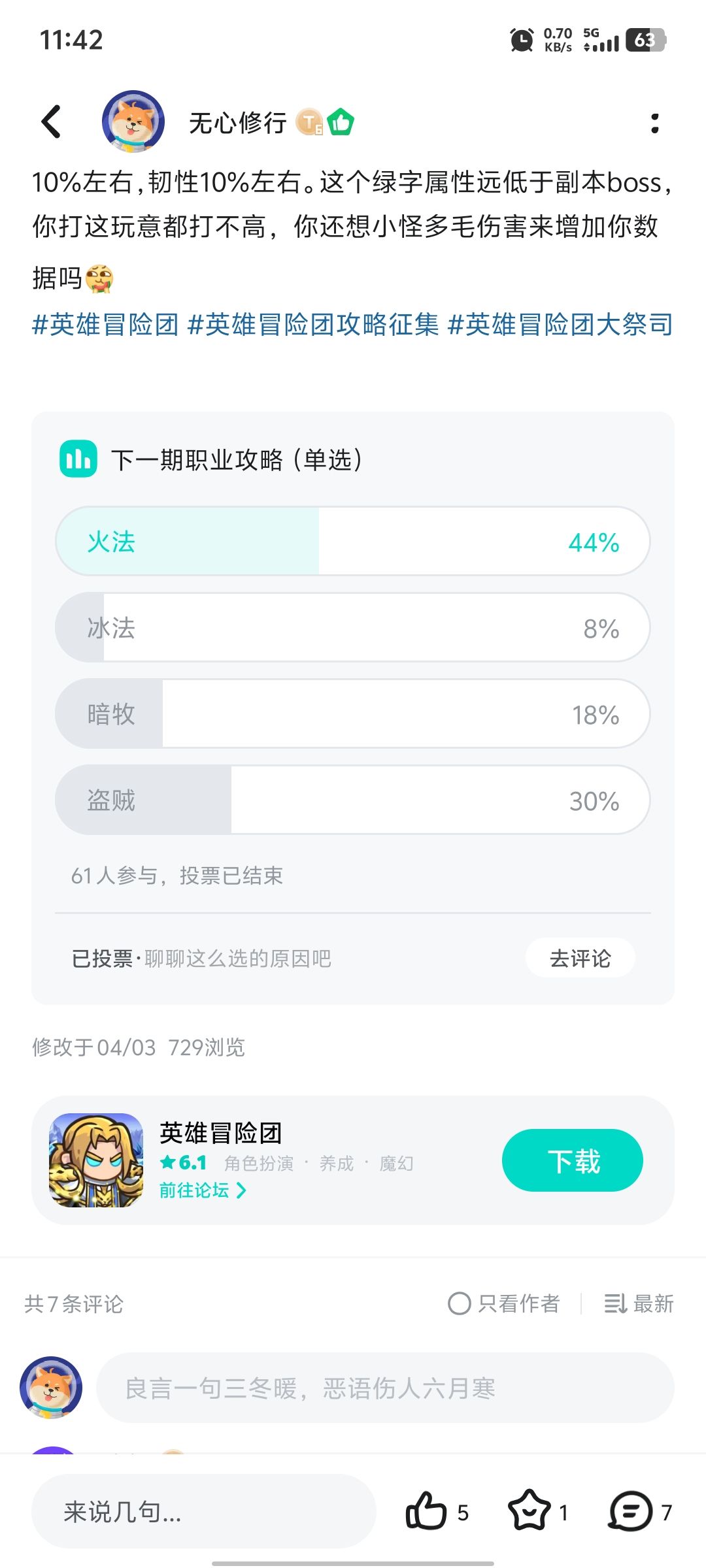 #英雄冒险团攻略征集 《英雄冒险团》是一款融合了角色扮演和冒险元素的手游,以下是一些关于游戏的活动指南: # 职业攻略 1. 盗贼职业 - 属性推荐:敏捷>力量>耐力,急速>暴击>闪避>招架 - 天赋推荐:选择盗贼仅有的一套战斗天赋。 - 技能顺序:先毒再隐匿,最后衔接攻击技能持续爆发。 - 武器选择:使用双手剑,优先选择冒险装备和挑战装备中品质和词条更好的武器。 2. 法师职业 - 属