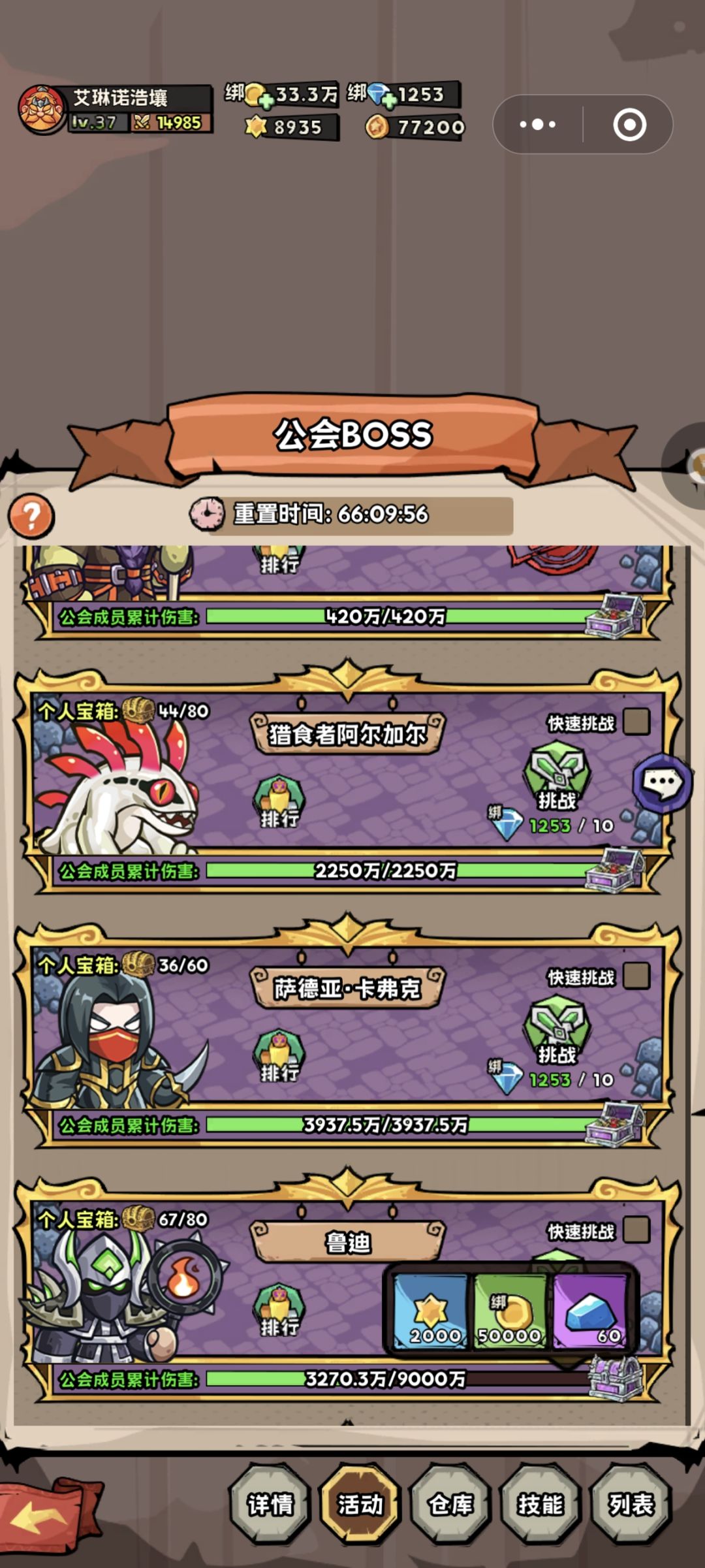 点我看往期攻略 整合群:955839417(3000人) 1.小伙伴们关心的资源用处问题。 升星石:这个是满级后氪佬们想提升急需的一个东西,提升很小,但是他图鉴多啊。前期不太建议普通玩家升级图鉴过多,因为很费金币。 精铁片:这个在满级以前其实只养一个角色的话缺口不是很大,缺口产生在你刚满60级的瞬间。一般你去某些交易平台买60级号,他们只会截图寸衣,而不截图装备强化,强化满是325级。但是59级强