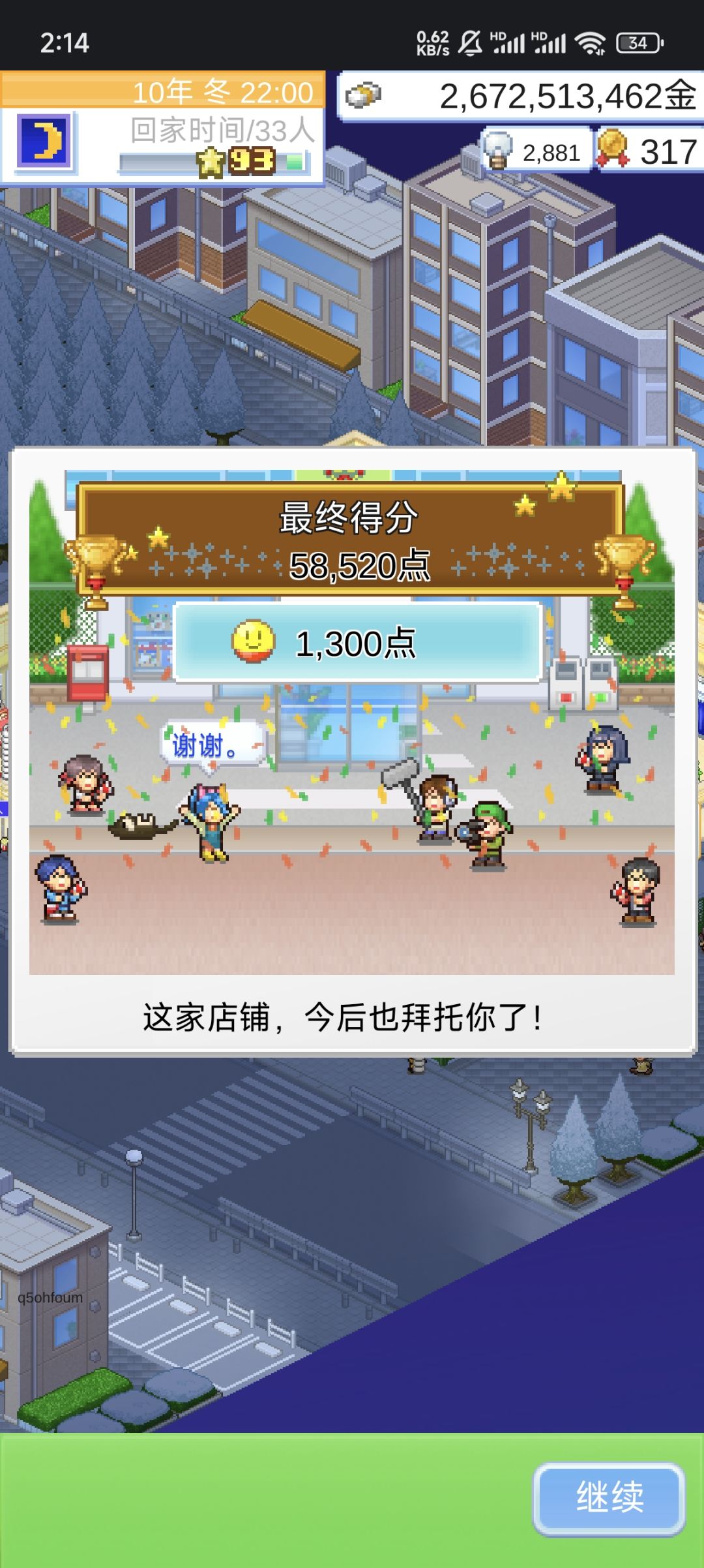贴几个心得 :本作玩法没什么创新,跟服装店基本一个模式,控库存,服装店plus 前期赚钱有点难 后期有点缺灯泡 注意事项是 不要一次按照布局图全抄上去 懒得看就放几个停一下会有曝气 切换地图的时候 也就是当年冬天前期至少攒够十几万才能玩得顺畅,可以在冬天的时候商品都摆满来一次竞赛,一次会给几十万金币 比赛的时候初级用最弱的,员工显示我很自信就可以 员工的指导方针优先升待客 这样就不怎么缺灯泡,比赛