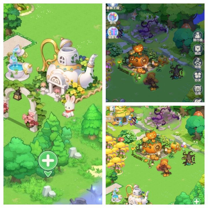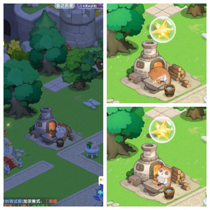 🏰 建筑可爱到犯规(一定要去游戏看动态效果): 图1-仓鼠铁匠铺:小仓鼠真的是在用生命打铁!图2-吹牛电厂:字面意义的“吹牛”!不吹的话,牛可就要压到猪身上啦,哈哈哈!图3-有机章鱼烧:看它的爪子,货真价实的章鱼小丸子,童叟无欺!!!图4-装硕大猫咖:见过这么man、这么“装硕”的招财猫吗?图5-火龙大排档:打工龙不易!小火龙累得眼睛都布满红血丝了~~~心疼!图6-树袋屋:王子公主的安