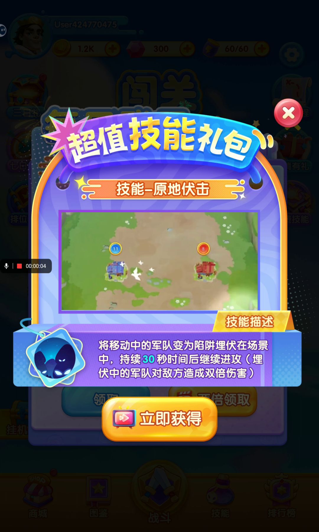 游戏今天更新了教程和挂机,每日可以看广告可以领取一次挂机收益,每小时可得31金币和10点随机技能,还可以勇闯关次数(5点)来领取一小时挂机奖励,最多可以领取五次,但如果没有领取满五次小红点就会一直在,不知道是不是更新的原因,又有了个小bug