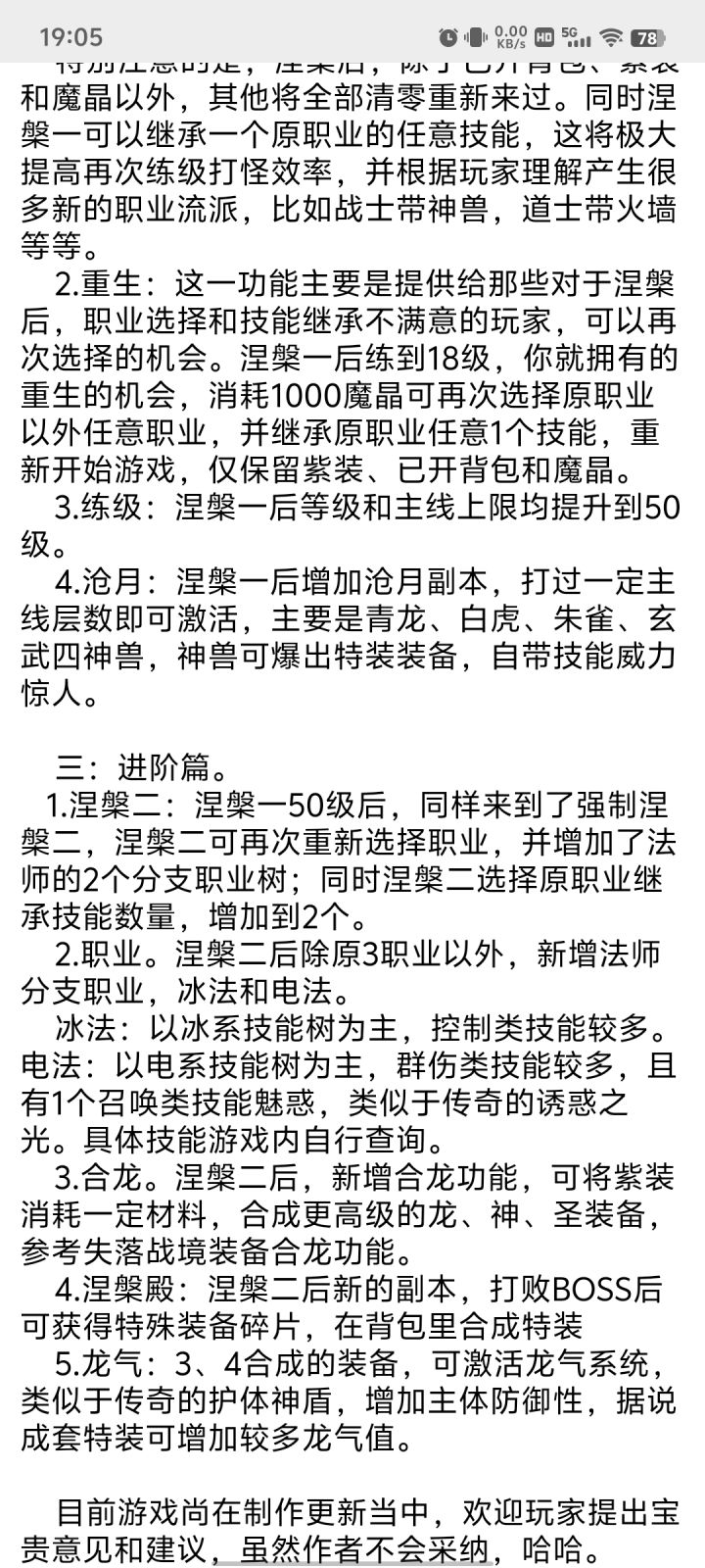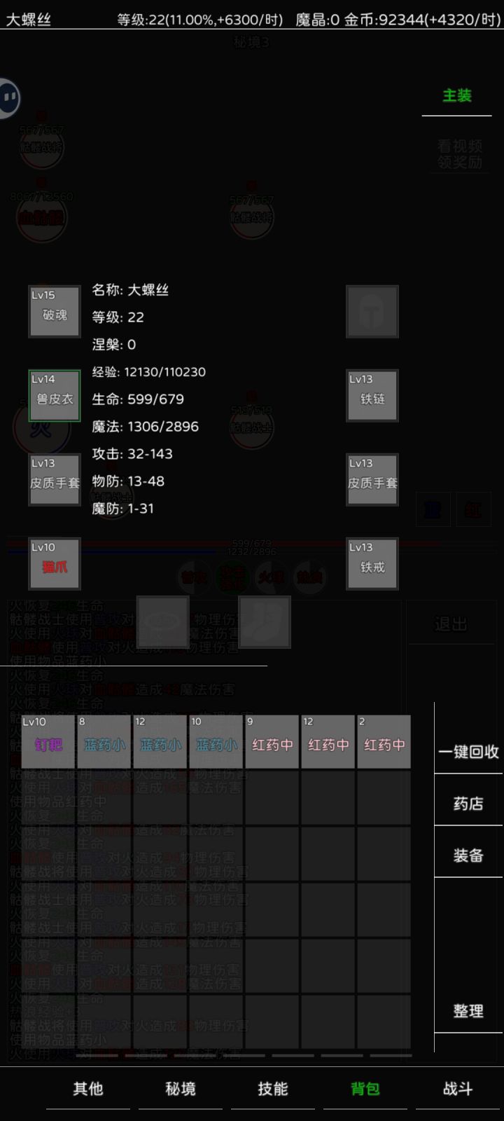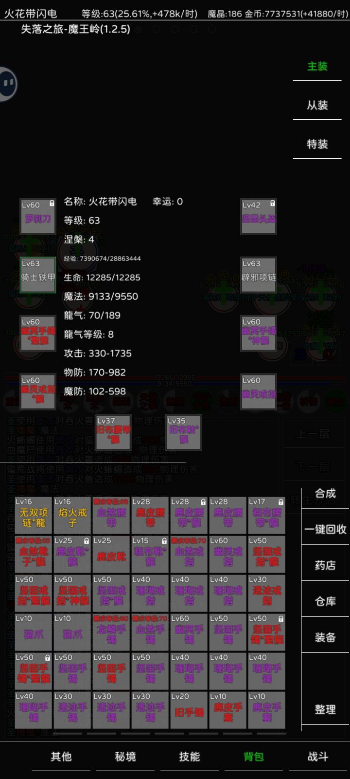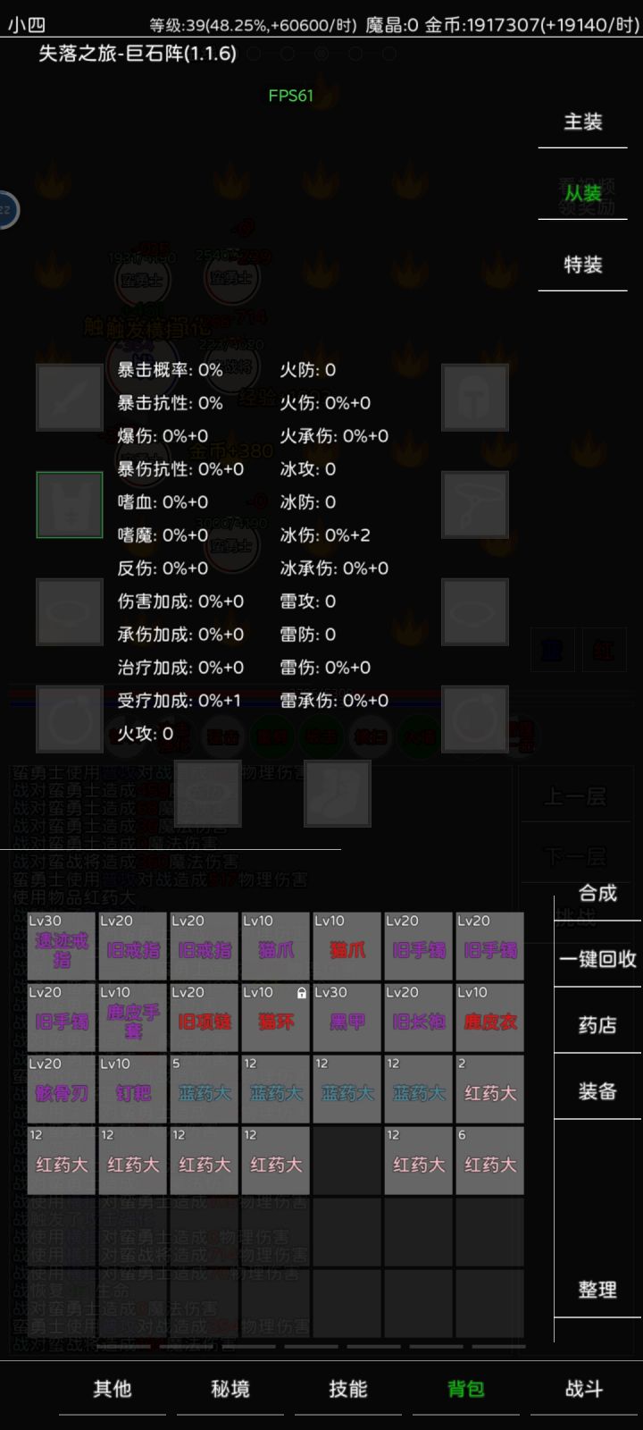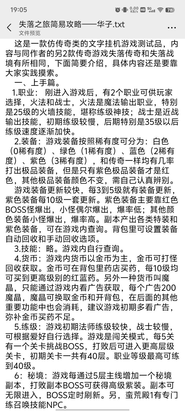 开局看喜好,选战前期推图快,能抗,选火后期火群攻,开局选挑战地图,基本到图5打不动了,回图4挂机一会,这时候可以看广告买红药,然后穿上掉的装备,推图5第一个boss,第一个boss每半小时在秘境刷新一次,掉买药的魔晶和红装。然后就是漫长的推图刷装备过程,看广告买药推图,级别越高的图,你离线还是在线每分钟挂机的经验都多不少。肝到40级,1转,这时候可以选新职业木了,并且可以保留一个之前职业技能。方