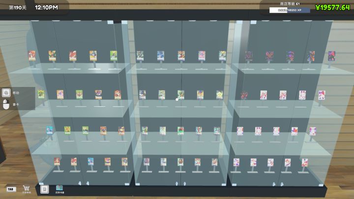在店内,你看到的绿牌就是休息,红牌就是营业。点击购物车界面进入商城,购买货物。除了卡包32,其余货物第一次购买的都是购买凭证。最好买数量多的,比如卡包64这种。因为你每次购买会有一个送货时间,闪电状的体力最好别乱用,不然后面就是一个劲看广告拿体力解锁凭证,没错后面的商品购买凭证要花费体力买。订的货到货后,根据提示打开箱子,屏幕中间小白点对准货架空着的地方点击“手心朝下”的按键,会把货物摆