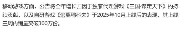 💰B站Q4以及全年财报出炉!B站2025年净赚25.9亿实现历史性扭亏,鸭科夫被提及表扬认为游戏收入全年增长和其上线后的表现有关近日,由哔哩哔哩旗下自研团队“碳酸小队”打造,备受关注的25年最强国产独立游戏《逃离鸭科夫》被B站表扬,引发网友热议表扬原因为B站在最近公布了它的2025年财报数据从财报内容来看,B站全年总营收303.5亿,调整后净利润25.9亿,这是B站第一次真正意义上实现全年盈