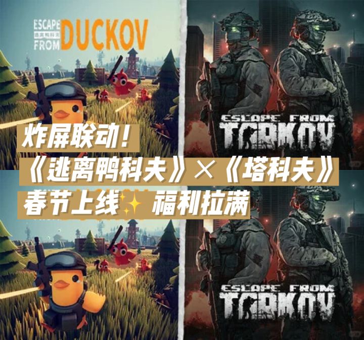鸭科夫联动今日正式开启!由哔哩哔哩旗下自研团队“碳酸小队”打造,备受关注的25年最强国产独立游戏,被誉为国产独游之光的《逃离鸭科夫》,就在今天,正式和它的“爸爸”《逃离塔科夫》开启梦幻联动了!这次可是双向奔赴,两边游戏都更新了不少内容,同时由于正好赶上春节,还引发了玩家讨论热潮在《逃离鸭科夫》这边,更新内容包括塔科夫经典地图、boss、相关收藏品等,此外游戏还新增了坐骑系统、扩展基地过年,