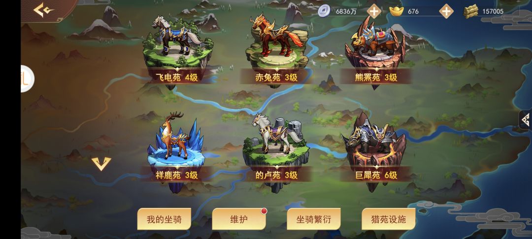 左零右火,雷公助我,坐骑繁衍是一门运气、技巧相结合的艺术。在掌中三国游戏里,坐骑、命签及阵法是本游戏核心玩法,作为平民/微氪玩家,粗略讲述自己的另外一个性价比玩法,各位道友如果玩的好,越战轻轻松松。 第一步,开局队伍规划好,争分夺秒解猎苑(马厩)。除开第一个马厩,其他的都是满足3级才开启下一个,所以直接无脑升级,到3级就下一个,直到全部解锁或者到达你想要的那个坐骑就行。(这里有多余元宝的可以买马