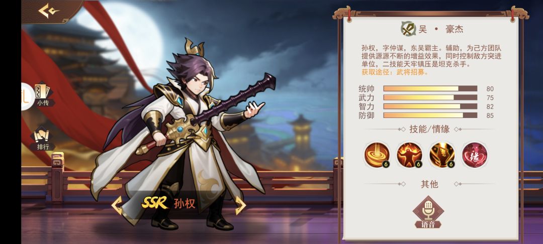 掌中三国之吴篇--“讨伐神将”孙权 建议玩家积极参加每天12:30-13:30和18:30-19:30的名将讨伐,这是获得元宝的重要渠道,如果获得最后一击和伤害最高,每天最多可获得560元宝加一个金君子,做为名将讨伐活动主力武将,孙权是当之无愧的“不二神将”,笔者带着大家一起看看孙权的技能特点: 技能一“制衡之策”:孙权只要每次实施制衡之策,双攻就各提升15%,并且本场战斗持续生效。这让孙权本身的