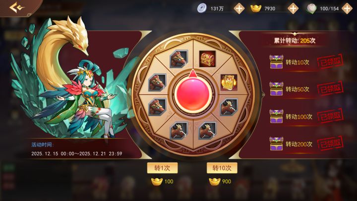 一. 元宝消费转盘活动想要最大利益化,一周要分两天花完 2w 元宝 ;第一天:活动里直接 100 抽,然后再花差不多 1k 元宝(可以专门在这一天专门抽马或在商店里买情缘食物),就可以在每日消费里领取SSR自选神兵宝箱 ;第二天同理 ;抽满 200 抽就可以拿满转盘的奖励,等下周活动刷新再抽 ;元宝不够的情况下一定要忍住别乱花 !转盘是获取木牛流马的主要渠道,也是武将突破道具来源关键