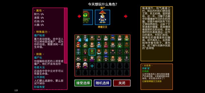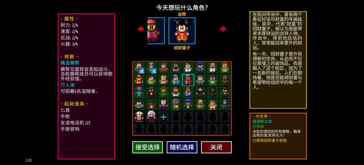 一、角色选择这个角色初始武器极强,有机枪地雷头盔等,只要加上无限子弹这个突变就纯纯爽游!(突变后面会讲)不过只有新手建议这样,要不然会减少很多游戏寿命(太强没体验😅)大任务:电力战争,每个关卡摧毁一定量发电机,很简单就能完成,另外有些人可能不知道完成大任务有什么用,完成大任务后可以在领主村获得强化(仅限本局游戏),开启突变“超级特殊能力”并且角色已完成大任务时这局游戏角色就会一直是强化状态,大