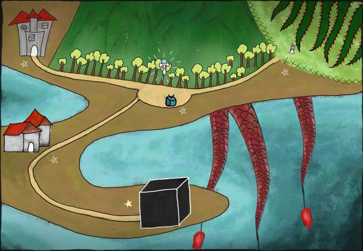 以下攻略内容中,新获得道具会用【】标注,新获得成就用《》标注。1、点【钥匙】,点【遥控器】,【遥控器】开电视2、树上两个果子拿掉获得【甜果】【苦果】,树后鬼身上获得【碗】,把【苦果】给旁边蚊子吃,获得成就《苦果》→死,再把甜果给蚊子吃,蚊子走,重新进一下电视机星星,再拿一遍两个果子;3、右上角栅栏星星进去,钥匙开锁,获得【铃铛】;4、左上角城堡星星进去,向日葵头上获得【光环】;5、天使恶