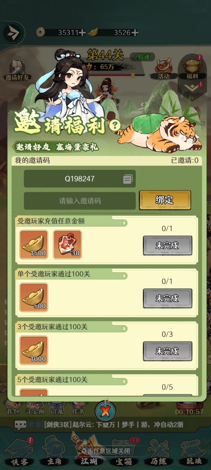 从内容来看,就是咸鱼之王+寻千大道+小小英雄,主体偏向是咸鱼之王,阵容,箱子,推关,爬塔,招募,角色装备,抓人收金币寻千大道,概率,升阶后概率的提升,主角装备小小英雄,抢占矿区,高级矿区,矿升科技,钓鱼,坐骑升级,升星其他,功法秘籍,经脉点亮等角色:招募最高级的概率极低,最主要获取途径:箱子消耗活动获得(8000分固定获得一个角色的碎片,不能自选),招募消耗活动获得(400招募固定获得另一