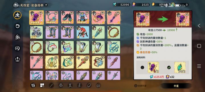 #御剑封魔 #御剑封魔攻略 最近很多小伙伴不清楚剑修该怎么玩,轻剑、重剑、剑阵,犹豫不决,毕竟太初石比较珍贵,大部分人选了之后可能就没法改变了,所以资源投入一定要慎重。先简单介绍一下剑修技能吧,单论白板伤害的话,最高的是重剑的周天和千钧,其次是剑阵的诛魔和玄灵,以及轻剑的鹤径,所以技能选择要尽量围绕千钧周天,才能伤害最大化。重剑套装,有点拉胯,因为后期可以做到满暴击和500以上爆伤,导致重剑