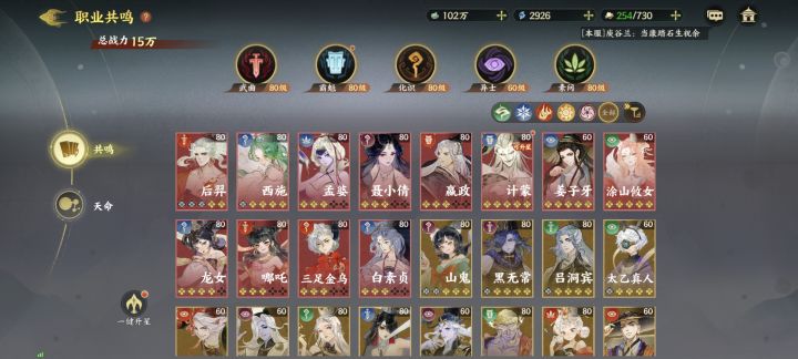 这游戏没有重置机制,是分为职业类型来升级的,利弊参半吧,吕洞宾和后羿职业一样,所以我后羿基本没怎么养成。但是如果你抽到了一个你没养过的职业。以我为例,我前期没有奶妈和异士,以至于我后期抽到了孟婆个鲲鹏但是却没钱养,只能等明天再养了,这点是比较痛的。