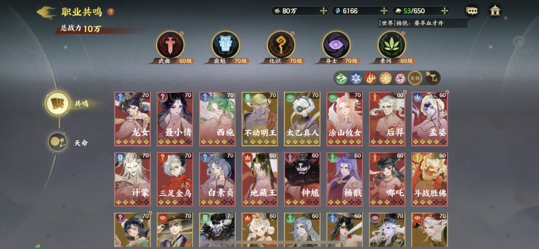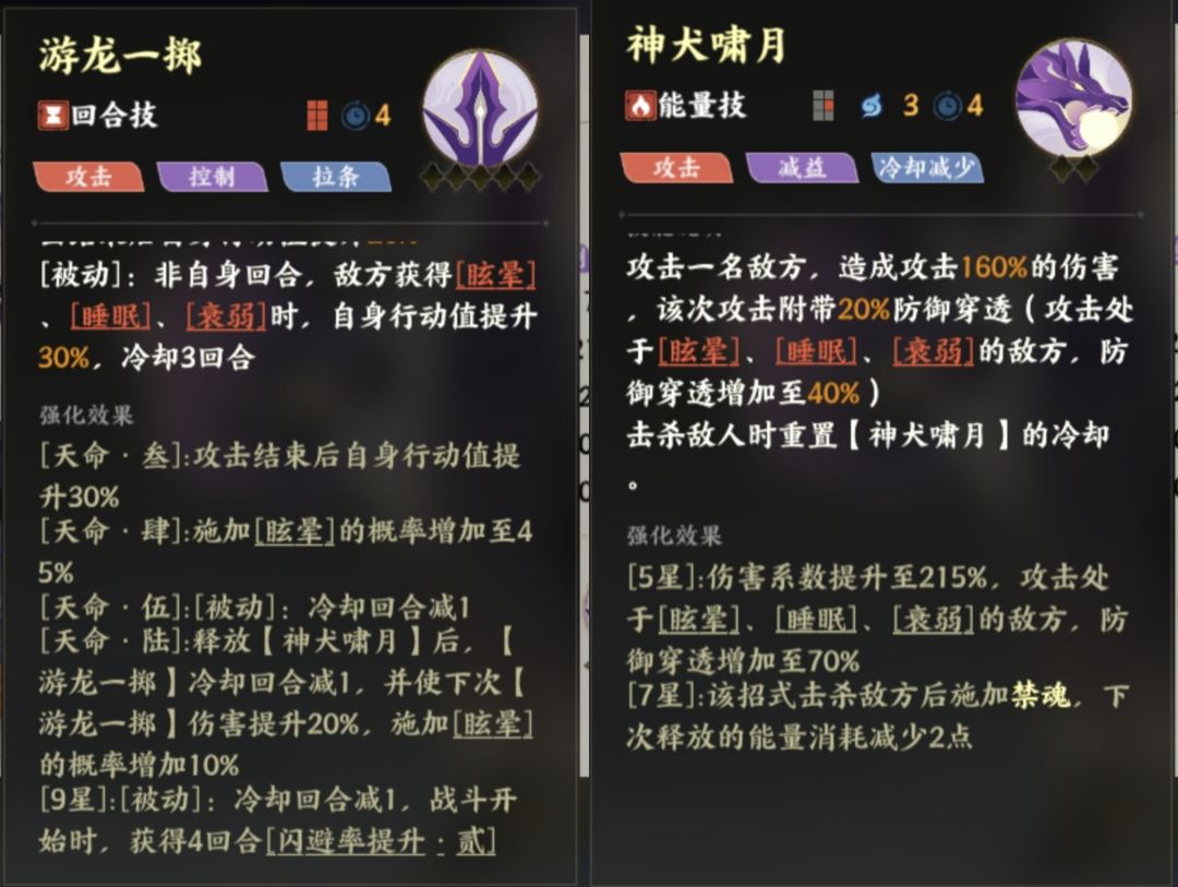 ●夹击率最高35%。反击套装也是35%,目前没见其他提升反击概率的。 ●偷能量只有pvp生效,问鼎山海应该是实时pvp,大概开服12天开启。随机行动值提升防一速同数值撞速,但抢一速可能被反超。 ●命中影响的比较多,被克制会减50%命中,pve尽量上克制。命中不影响负面初始的【触发概率】(技能面板),但会影响技能描述为“命中后施加”。 ●从天命三开始为个人天命,不通用。材料类似笔绘的果子,白嫖获取比
