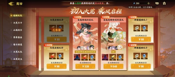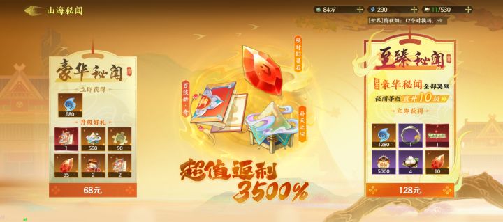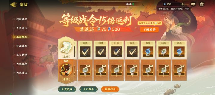 又新发现了氪金华点,原本我觉得战令分三种已经是我认知上限了,没想到啊没想到,随着我的等级升到32级,闯过更多关卡,解锁了更多氪金点。#指间山海 好家伙,三种战令还分一阶段,二阶段,每阶段98R,奖励一致,我原地360°托马斯回旋6。然后是月卡30和68两档,有战令在前,算是眉清目秀了。重点来了,0氪党微氪党基本无获得途径的光暗幻灵石原来是藏在648档礼包里面了,真不戳,还不限购,这是等着开服第一天